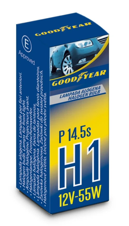 • 1 брой халогенна крушка H1 Х1 12V 55W P14,5s 5000K E4 Goodyear Гудиър