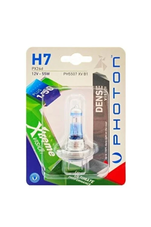 4. 1 брой халогенна крушка H7 Х7 +150% 12V 55W PX26D в блистер бяла светлина XTREME VISION PHOTON