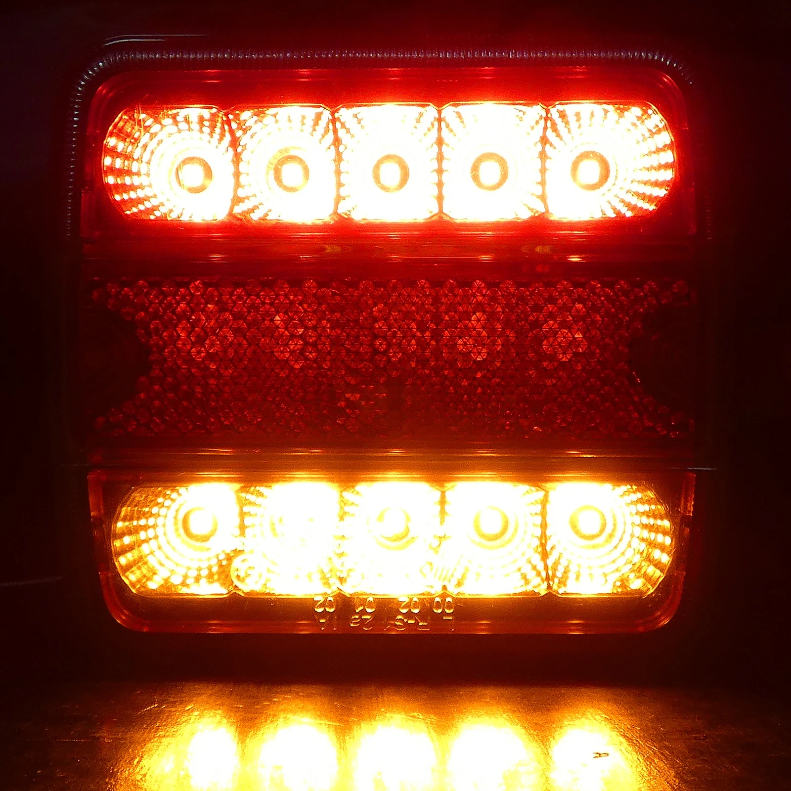 Един брой нов LED диоден стоп. Мултифункционален: - стоп светлина - габарити - мигачи - задна светлина - рефлектор - осветление за номера Подходящи за тирове, камиони, бусове, ремаркета, каравани. Лесен за монтаж. Размери: 106мм x 98мм x 35мм