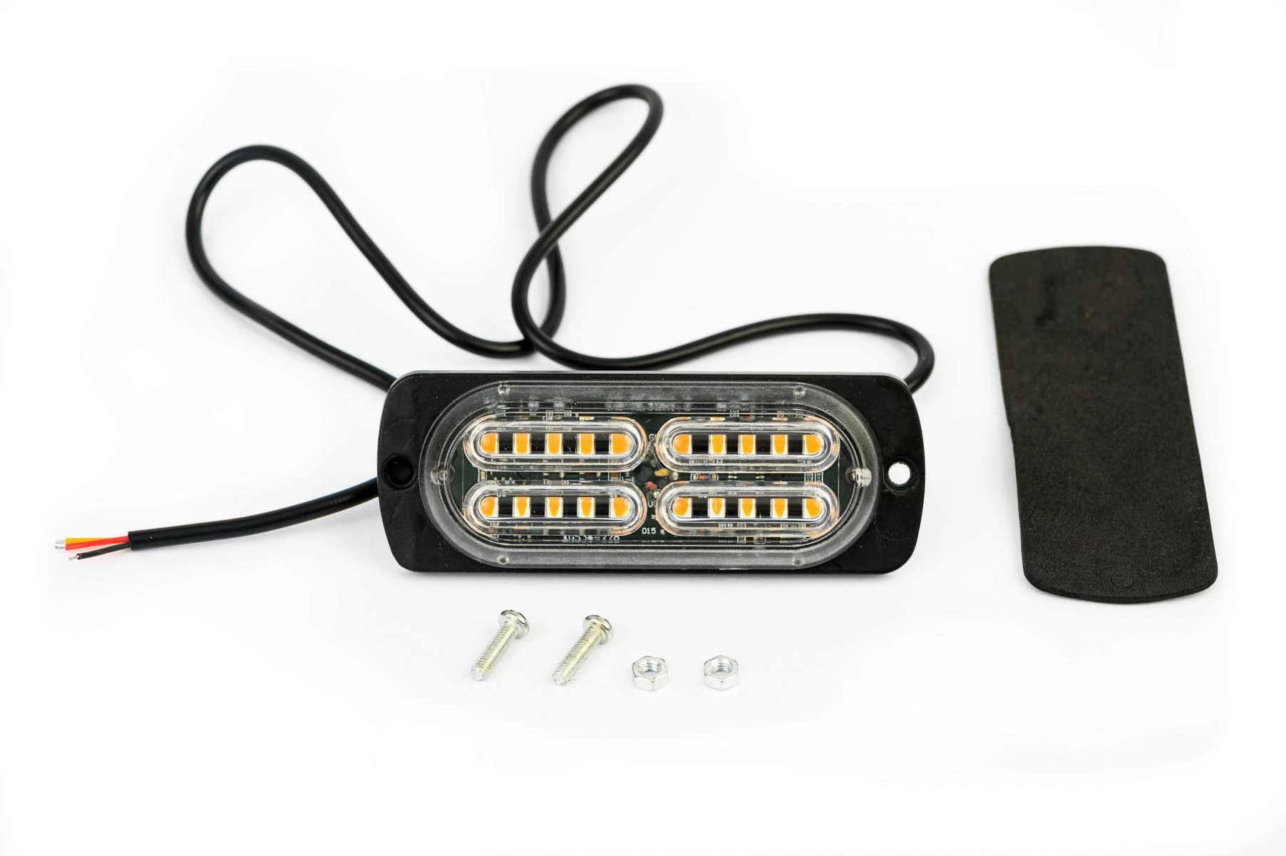 Диодни LED аварийни сигнални светлини, блицове. Жълти аварийни светлини, мигащи. (12V 24V) Ново и високо качество. * Състои от 20 светодиода с висока интензивност с оптични лещи. * 3 избрани модела на светкавицата. * Компактен и лек, лесен за използване. * Влагозащитен * Универсален за всякакви коли, SUV или камиони. Спецификации: Брой на светодиоди- 20 Напрежение: 12V 24V (Multi Voltage) Мощност: 3W ( 0.5W/LED ) Дължина на захранващия кабел: 14 cm