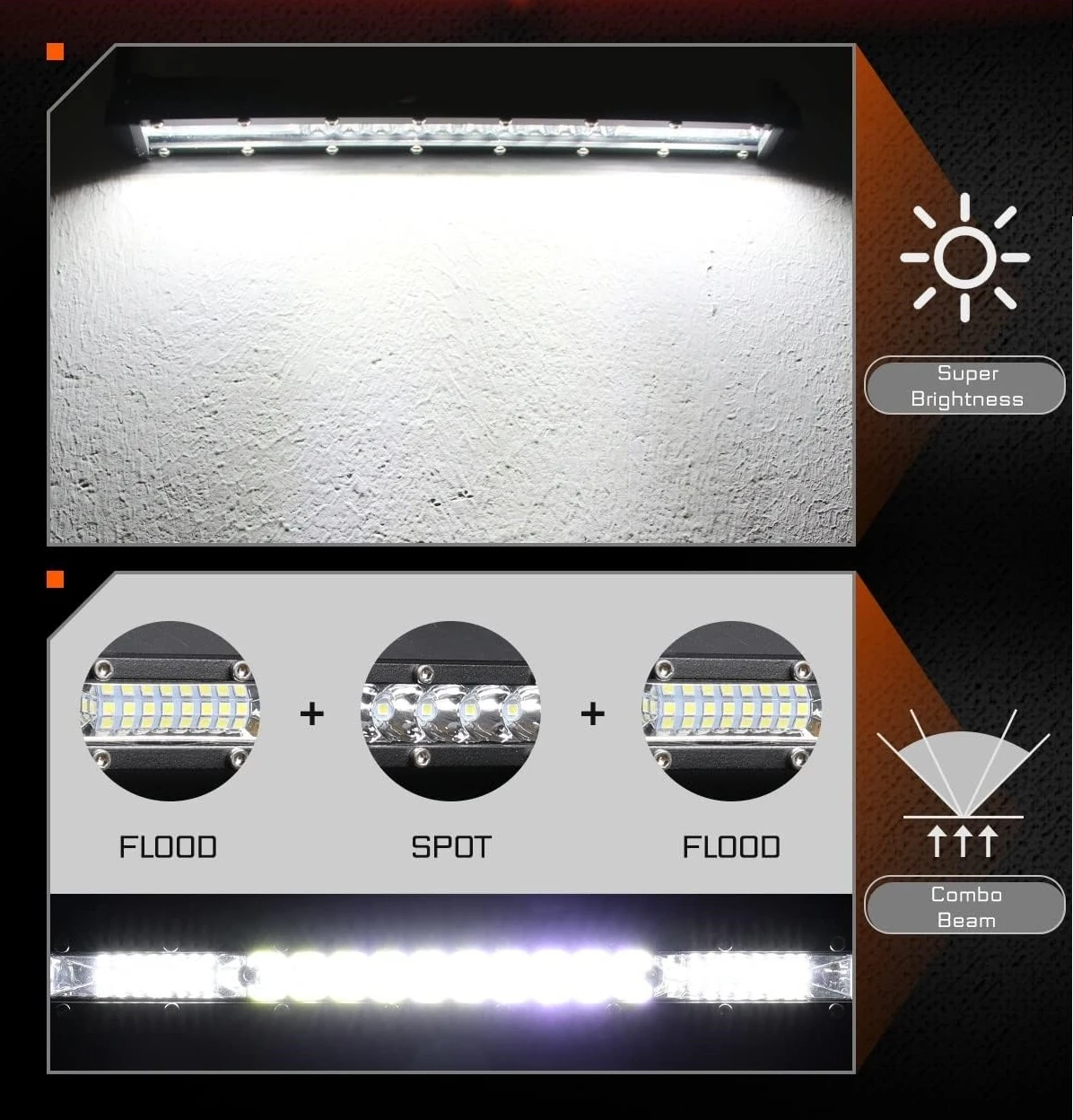 4. 27.5 см Диоден LED Лед Бар 72W Ултра Тънък 12-24V Комбинирана Combo - Flood и Spot Светлина
