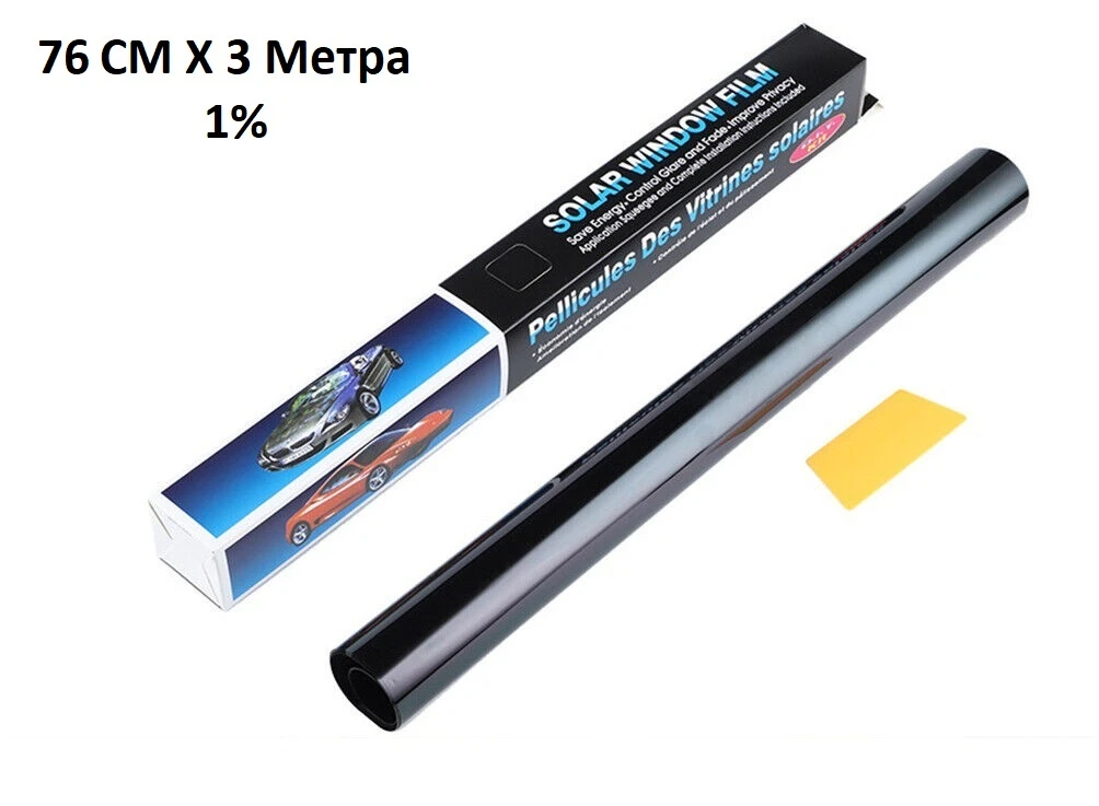 76 СМ X 3 Метра 1% Ултра Супер Тъмно Черно Авто Фолио за затъмняване на стъкла прозорци + нож шпатула и кутия