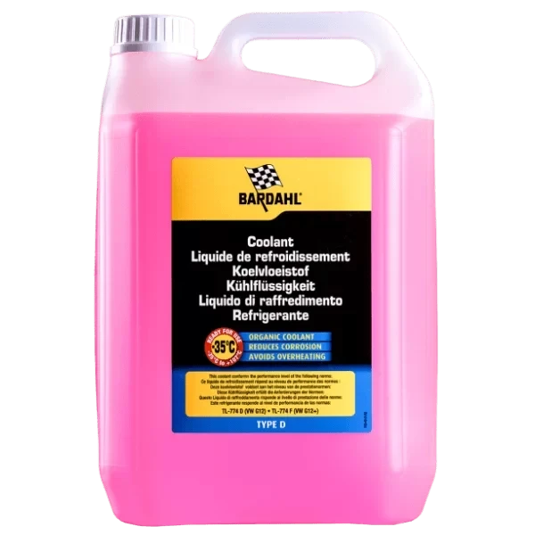 BARDAHL Антифриз Type D е разработен на база етилен-гликол чрез технологията Органични Киселинни Инхибитори. Не съдържа нитрити, амини, фосфати, борати и силикати. Отлична ефективност при проведените антикорозионни тестове върху мед, стомана, чугун, алуминий, месинг и припой. Химически неутралитет ( рН : 8,0). Притежаваната алкалност неутрализира киселинността на отработените газове. Има силни противопенни свойства и висока стабилност към „твърда вода“. Ниска скорост на изчерпване на инхибитора. Не е агресивен към съединения и покритията на детайлите. Съдържащите се инхибиторни агенти отговарят на ЕС законодателство. Съвместим с антифризи на база етилен-гликол.
