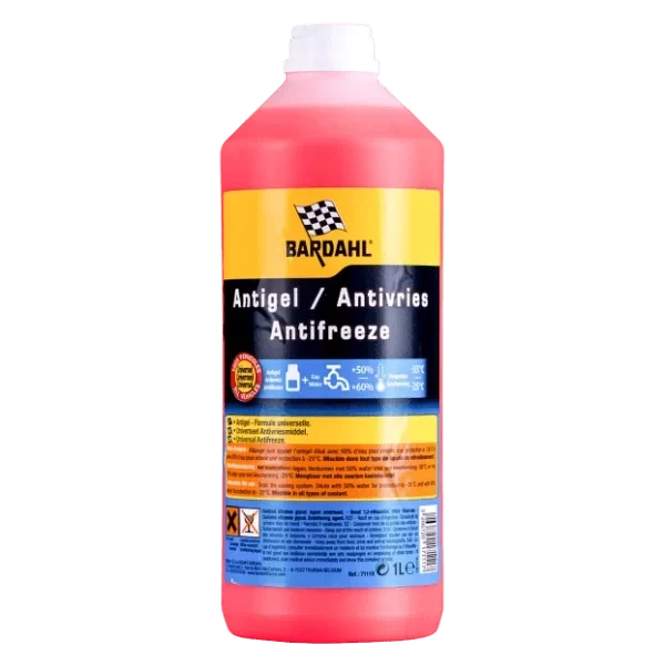 BARDAHL Универсален Антифриз е разработен на база концентриран етилен-гликол чрез технологията Органични Киселинни Инхибитори. Не съдържа нитрити, амини, фосфати, борати и силикати. Отлична ефективност при проведените антикорозионни тестове върху мед, стомана, чугун, алуминий, месинг и припой. Киселинност – (pH: 7,0-8,0). Притежаваната алкалност неутрализира киселинността на отработените газове. Има силни противопенни свойства и висока стабилност към „твърда вода“. Ниска скорост на изчерпване на инхибитора. Не е агресивен към съединенията и покритията на детайлите. Съдържащите се агенти отговарят на ЕС законодателство. Съвместим с всички антифризи на база етилен-гликол.