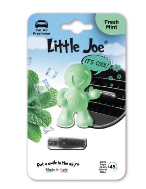 Модел:  04149 - ЕТ0808 Little Joe® OK е щастлив 3D освежител за въздух за кола. Ароматизаторът се поставя на въздуховодите на автомобила със скоба. Дълготраен аромат, който продължава  приблизително до 45 дни.  Функция Scratch and sniff Произодител: Италия Аромат: Мента Цвят: Зелен