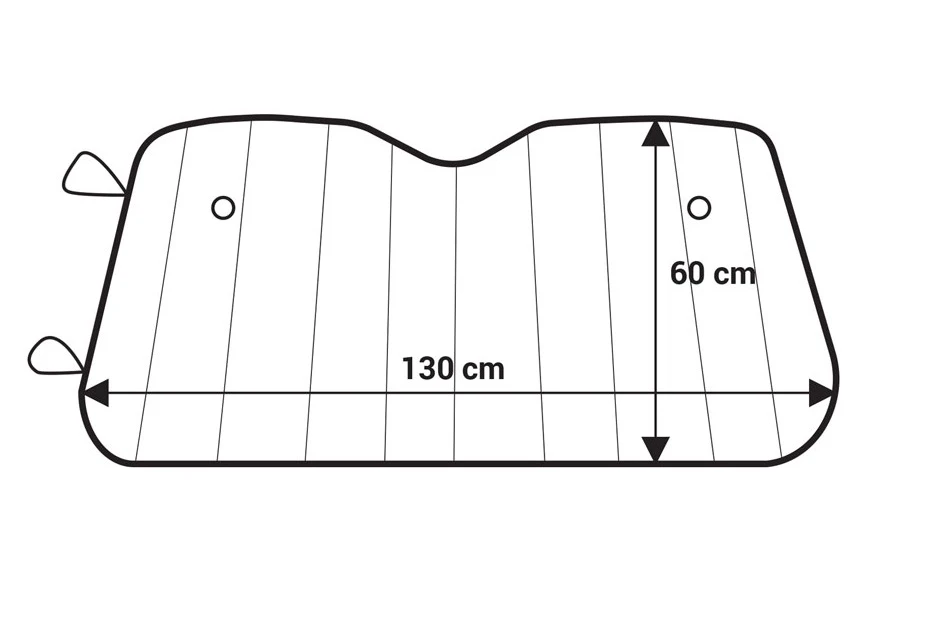 Двулицевият сенник се сгъва и разгъва с невероятна лекота. Той отразява слънчевите лъчи, което прави температурата в колата поносима в горещите летни дни. За разлика от повечето сенници, нашият модел разполага с вакуумно закрепяне. Сгъва се до компактни размери. Цвят: сребрист Размери в разгънато състояние: 130 х 60 см. Закрепването е с вакуум държачи на стъклото, включени в комплека (2бр.).
