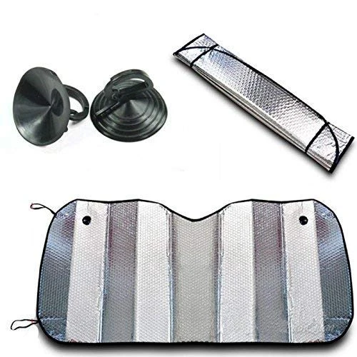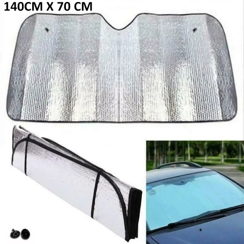 Двулицевият сенник се сгъва и разгъва с невероятна лекота. Той отразява слънчевите лъчи, което прави температурата в колата поносима в горещите летни дни. За разлика от повечето сенници, нашият модел разполага с вакуумно закрепяне. Сгъва се до компактни размери. Цвят: сребрист Размери в разгънато състояние: 140 х 70 см. Закрепването е с вакуум държачи на стъклото, включени в комплека (2бр.).
