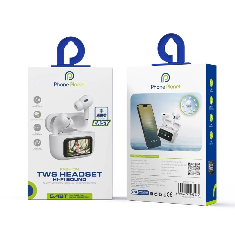Phone Planet PP-BT09 са безжични TWS слушалки от ново поколение, създадени за удобство, стил и практичност. Те идват с интелигентен LED дисплей, който предоставя в реално време информация за нивото на зареждане на кейса и на двете слушалки поотделно.