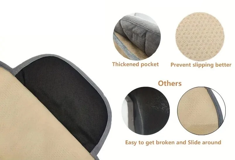 Предпазната подложка защитава тапицерията на вашия автомобил от вдлъбване, износване и деформиране. Също така, тя ще опази вашите седалки от разливане на течности и замърсявания. Размери: дължина 50 см, ширина 50 см, ширина на джоба 30 см. Цвят: Черен 1. Удобна и мека, приятна на допир придаваша топлина, мека на допир, топли при пътуване, дебела плюшена възглавница, топло сърце, придружава ви през зимата 2. За пътуване с кола през зимата, възглавницата ви дава трайна топлина и уют , за да се наслаждавате на топлината и комфорта на нейната прегръдка. 3. Удебелен еко заешки плюш, висока плътност, висока еластичност, ярък цвят, пухкава текстура, лек и деликатен допир 4. Пухкав, топъл, топъл при натискане, удобен и приятен за кожата 5. Деликатна и мека като бебешка кожа, използваща екологично чист печат и боядисване, щадяща кожата издрава 6. Противоплъзгащи се частици от силикагел, противоплъзгащи се и устойчиви на износване, предотвратяват движението и разместването на възглавницата на седалката, частиците са кръгли и пълни и няма да наранят оригиналната седалка за кола 7. Лесенен за поставяне, не се скубе лесно, пере се, не избледнява Компактната и подходяща за почти всички автомобили със стандартен салон. Нейните предни джобове са подходящи за съхранение на различни дребни предмети, почистващи кърпички или др. Покритието на предпазната положка отпред и отзад е неплъзгащо се, за да се предотврати изместване. Изработена е от висококачествен материал, издръжлив и практичен за използване. Дишаща материя. Осигурява комфорт.