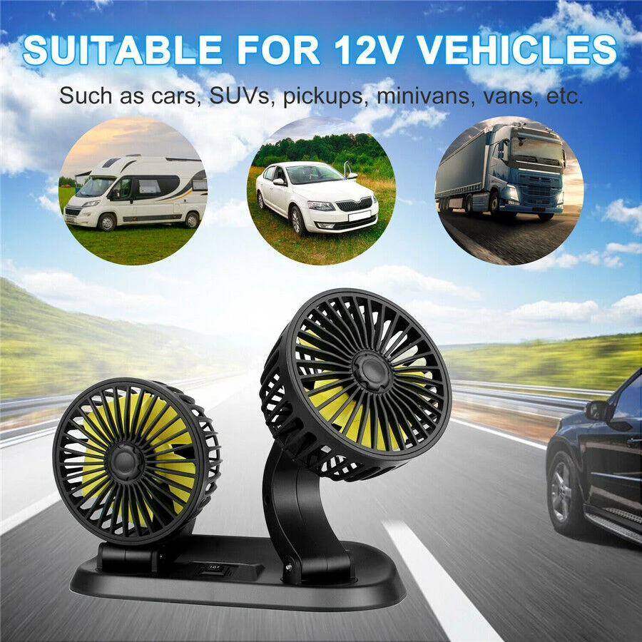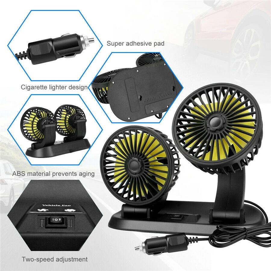 Ниска консумация на енергия, супер енергоспестяващ и екологичен вентилатор.Вентилаторът е с въртящи се глави на 360 градуса.2 степени с бутон за превключване за максимален комфорт.Закрепване чрез двойнолепящо тиксо.Захранване към запалката на превозното средство.Напрежение: 12VМощност: 10WДиаметър на главата: 10.5 см.