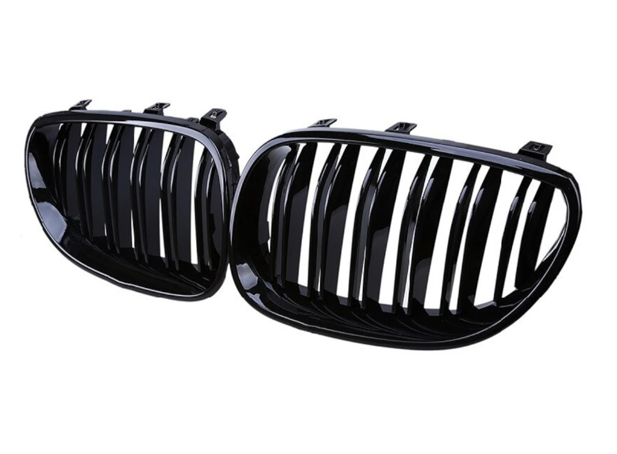 Комплект Черен Гланц Бъбреци / Решетки Двойни Ребра За: BMW 5-Серия E60 Sedan 2003-2010 BMW 5-Серия E61 Touring 2003-2010 BMW 5-Серия E60 / E61 M5 2004-2011 Материал: Висококачествена Пластмаса Цвят: Черен Гланц (Piano Black) Цената е за комплект 2 броя бъбреци ОEM ЛЯВА РЕШЕТКА : 511370270 61 / 511370657 01 / 517121554 46 ОEM ДЯСНА РЕШЕТКА: 511370270 62 / 511370657 02 / 517121554 47
