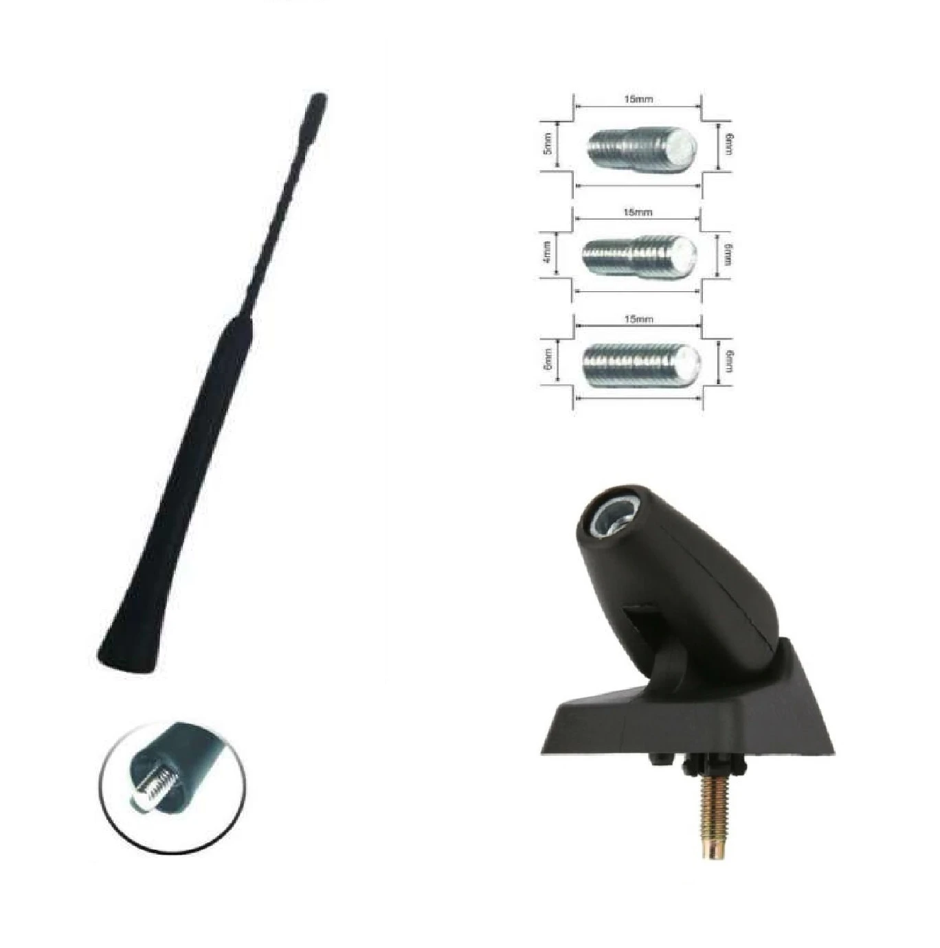 Нова радио антена за автомобилМатериал: алуминийРазмер: 235ммвключени 3 различни накрайника с 4мм, 5мм и 6мм резбаЛесна за монтаж, завива се върху настоящата резба на основата на антенатаС каучуково покритие за по-висока издръжливост. Висококачествена Основа База FM АМ Радио Антена За Пежо PeugeotРазмер:5 мм диаметър13 мм дължина Подходящ за: Пежо 106 I и IIПежо 206Пежо 206+Пежо 306 I и IIПежо 405Пежо 406Пежо 806Пежо Expert 1 и 2, 3Пежо PartnerПежо Partner VP(M59) Моля, имайте предвид, че по-ранните модели автомобили не използват тази база в предната част на автомобила. Използват различна.