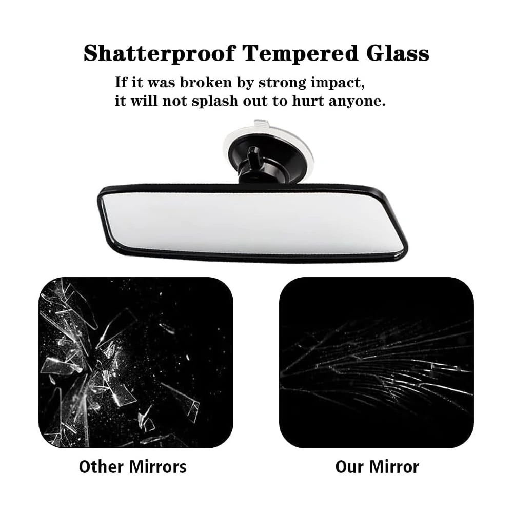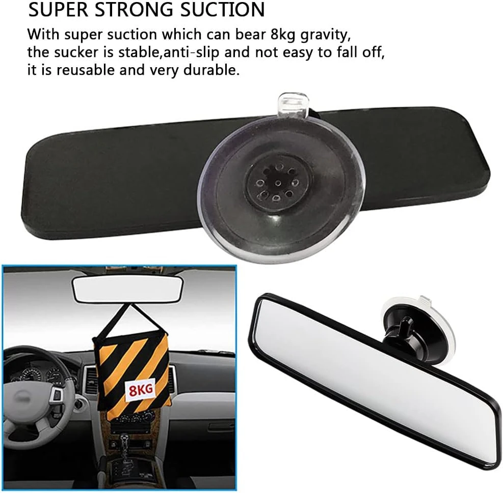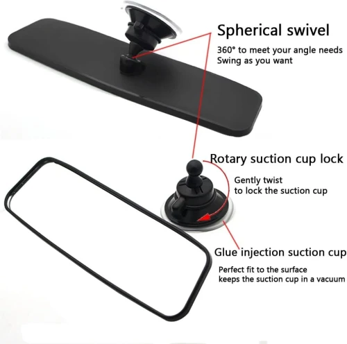 Интериорно огледало за автомобил за обратно виждане с вакуум. Универсално с овална форма, лесно за поставяне. С 360 въртяща се стойка с вакуум издържащ до 8кг натоварване. Придава кристално чист образ. Размери: 24 x 6cm