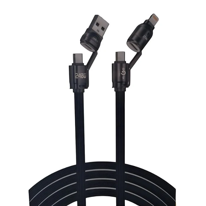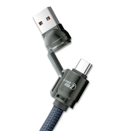 4в1 мултифункционален кабел – комбинира няколко накрайника в едно удобно решение: Type-C към USB Type-C към Lightning Бързо зареждане (Fast Charge) – поддържа мощност до 240W, подходящ за телефони, таблети, лаптопи и други устройства. Дължина: 120 см – идеален за ежедневно ползване у дома, в офиса или в автомобила. Универсална съвместимост – съвместим с Android, iPhone, iPad, MacBook и други устройства с USB-C или Lightning порт. Здрава и устойчива изработка – издръжлив на огъване и износване, направен от качествени материали. Компактен и практичен – идеален за пътуване, замества нуждата от няколко отделни кабела.