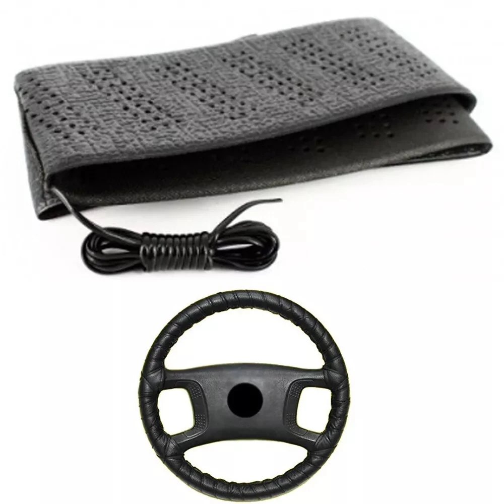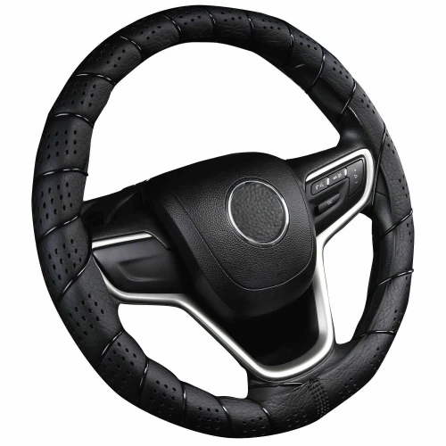 Калъф за волан в класически ретро стил. Материал: Синтетична кожаРазмер: за волани с диаметър 35-41 cmЦвят: Черен Комплектът включва: Кожен калъф за волан PVC шнур Приложение: Предпазва волана от повреди. Придава класически ретро стил на волана. Моля, уверете се, че сте измерили своя волан и сте го сравнили с размерите, посочени в обявата, преди да поръчате, за да гарантирате добро прилягане.