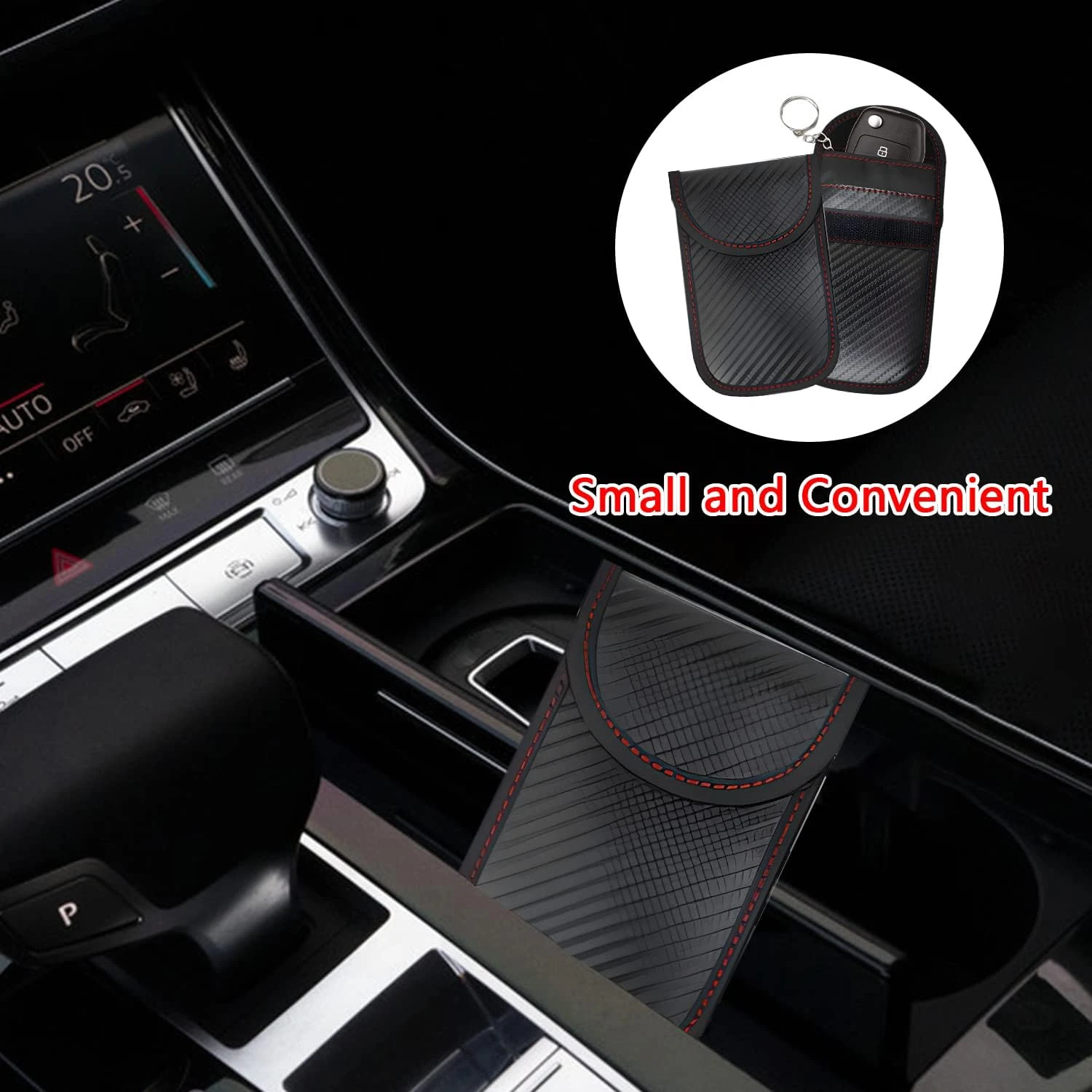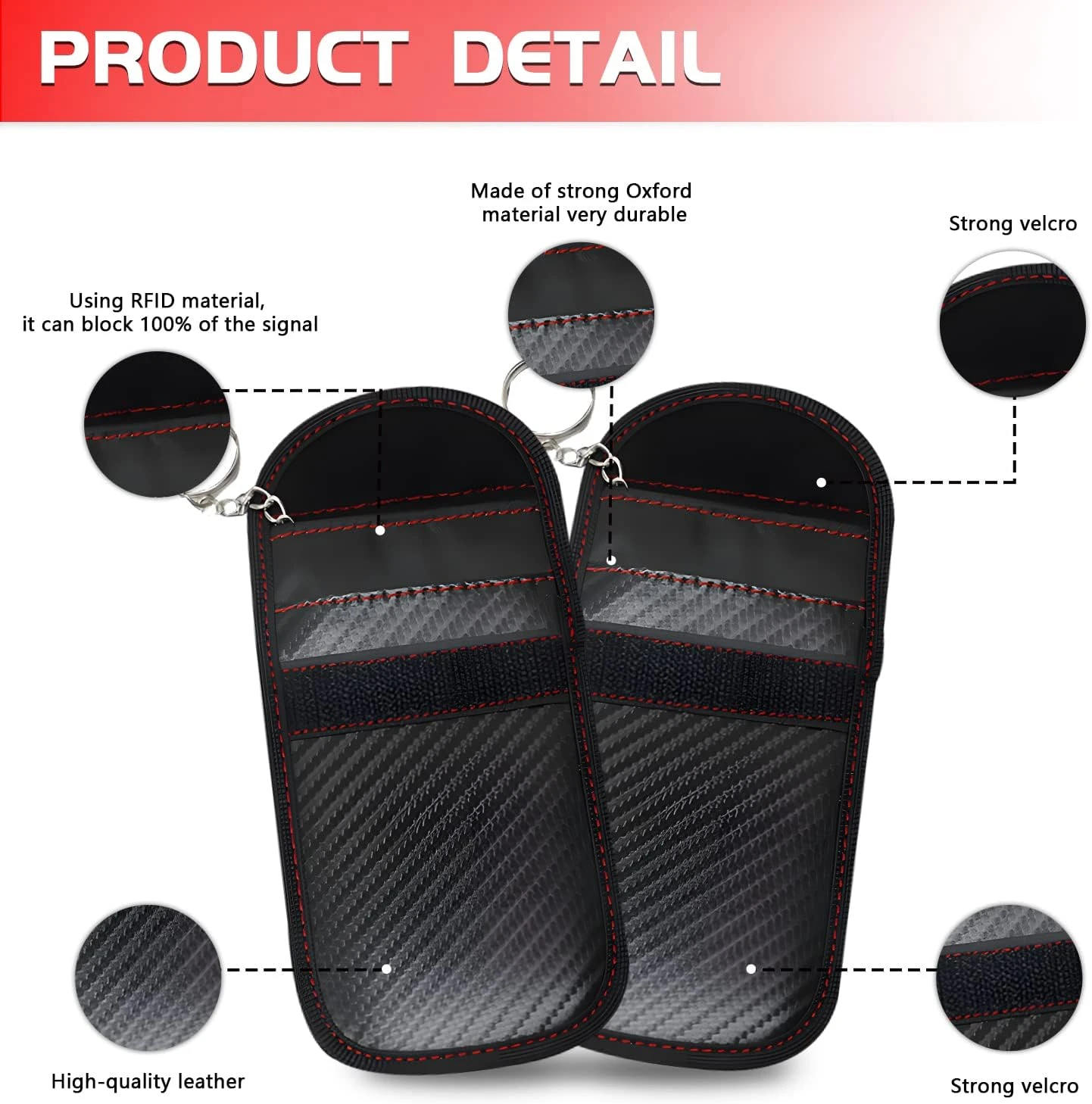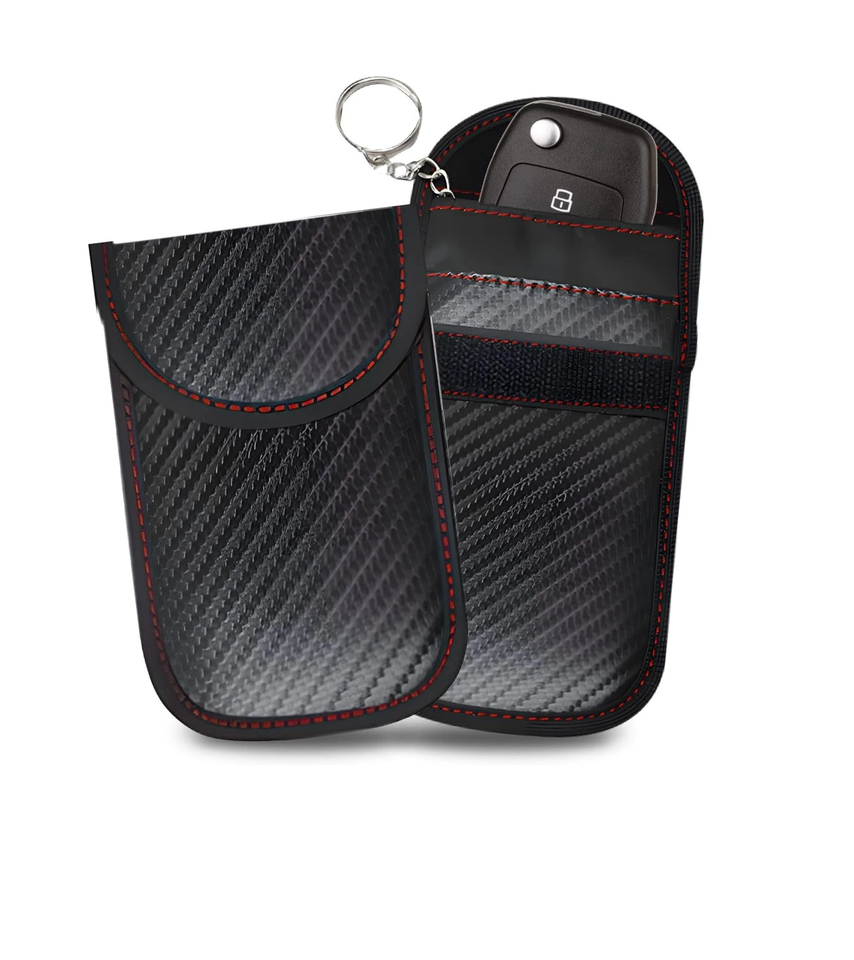 Калъф за заглушаване и блокиране на KEYLESS-GO сигнал защитава вашите автомобилни ключове при автомобили с безключово стартиране. Материалът, който се използва, предпазва продукти, използващи RFID (Radio Frequency Identification) технологията като ключове за автомобили, документи за самоличност, банкови кредитни, дебитни карти с RFID чип, безконтактни карти за контрол на достъпа, карти за градския транспорт и др. За да защитите колата, поставете ключовете в горния джоб със сребриста подплата.От своя страна долната ви позволява да установите сигнал с автомобила, благодарение на който се използва за съхранение на ключове по време на шофиране. Има два вътрешни джоба и ключодържател за закрепване на ключа. Цвят: черен карбон Размери: 14.5 x 9.5см