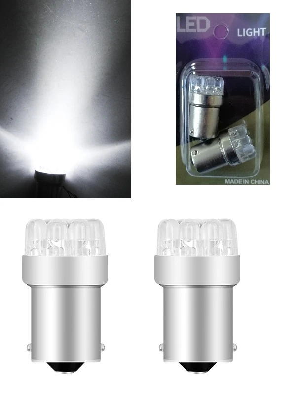 4. Комплект от 2 броя LED Лед Крушки за Mигач Стоп Габарит Халоген 9 LED 1156 BA15S 12V Бяла Светлина в Блистер