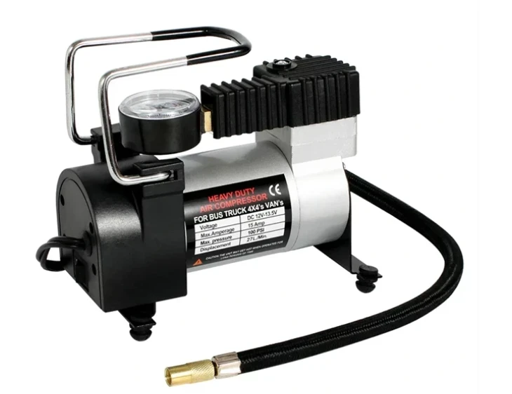 Компресор за гуми 12V - подходящ за леки автомобили, велосипеди, топки, надуваеми басейни и др. - Здрава и олекотена конструкция - Максимално работно налягане: 100 PSI. Доставка 1 - 3 работни дни.Автомобилен въздушен компресор 12 V е компактен, преносим с манометър с лесно четяща се скала от 0-100 bar налягане. Компресора разполага с противоплъзгаща дръжка. Гъвкав маркуч с удобен накрайник, като на стандартните помпи, който се слага удобно към вентила с дължина 50 см. и захранващ кабел около 3 метра. Компресора за гуми има постоянен работен цикъл около 10-15 минути. след което е необходимо преустановите работата за известно време. Подходящ за къмпинг, дълги пътувания, самостоятелно шофиране и др., при напомпване на автомобилни гуми, вело гуми, надуваеми басейни и дюшеци и др. Характеристики: Въздушен компресор Модел: 26017 - 1420 Подходящ за леки автомобили, велосипеди, топки, надуваеми басейни и др. Разполага с 1 бутало Лесно преносим Противоплъзгаща дръжка Здрава и олекотена конструкция Изработен от метални компоненти - проектирани да издържат години на употреба Комплекта включва три накрайника за помпене: топки, вело гуми и други Високо прецизно измерване на налягането, широк спектър от приложения ABS топлинният щит осигурява безопасната работа Манометъра е вграден в самия компресор: лесно четяща се скала от 0-100 bar налягане Напрежение: DC 12V-13.5V Номинално напрежение: 12V Максимално напрежение: 14 A Мощност: 120W Включване към запалката Максимално работно налягане: 100 PSI (10 гр/кв.м) Максимално налягане при рестарт: 150 PSI (13 кг/кв.см) Капацитет: 25 литра / мин. Максимална работна температура от: -50 до 60°C. Работен цикъл около 10-15 минути. Спецификации: Материал: метал + ABS Цвят: черен и сребрист Размер: 16 х 8 х 14 см Гъвкав маркуч с удобен накрайник, като на стандартните помпи, който се слага удобно към вентила: 50 см. Дължина на захранващия кабел: 3 м Корпус на цилиндъра: 1 х 30 мм Има бутон за включване/изключване Пакет 1 x помпа за гуми 1 игла 2 x адаптер за дюзи Как се използва? Моля, стартирайте колата преди да започнете да използвате компресора Ако защитният ток на запалката е по-малък от 13A, използвайте акумулатора за да вземете електричество. Необходим е разклонител за запалка с щипки за акумулатор. A. Захранване чрез Запалката Свържете компресора към запалката Свържете дюзата за въздух на гумата и я затегнете Включете компресора B. Захранване чрез акумулатора (необходими са щипки с накрайник за запалка за да включите компресора) Положителният и отрицателният електроди на батерията са захванати чрез щипки Свържете дюзата за въздух на гумата и я затегнете Свържете захранването на компресора Включете компресора и започнете да надувате