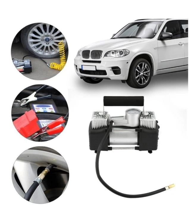 Компресор За Помпане На Гуми Двубутален Двуцилиндров Метален 12V 20A