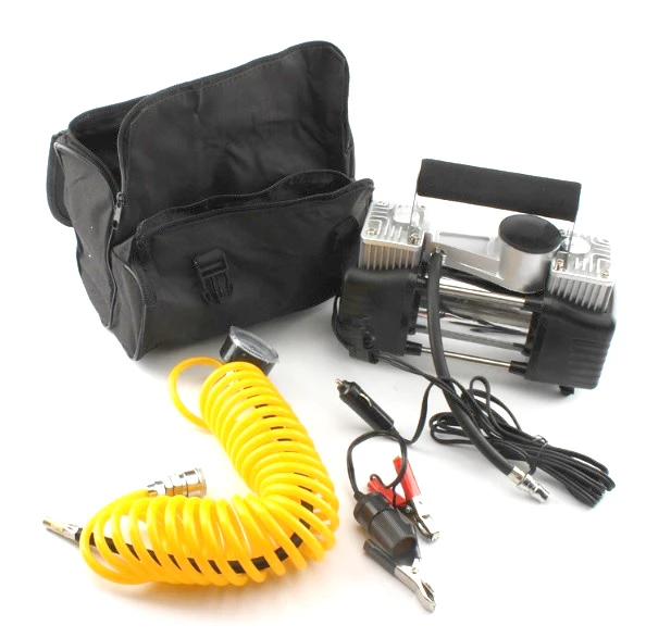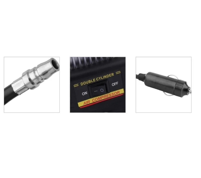 *2бр цилиндри с диаметър на 30мм*Максимално работно налягане 150PSI*Дебит на компресора 55л/мин*Пикова косумация 20А*3бр накрайници за помпене на топки дюшеци и други*Максимално време на ползване без прекъсване 20мин*Работно напрежение 12 волта 12V*Захранване -По избор директно от акумулатора с щипки или в запалката на автомобила*Захранващ Кабел 3 метра*Спираловиден маркуч за помпене с манометър лесно сваляем с бърза връзка-5 метра *Практична чантичка за съхранение