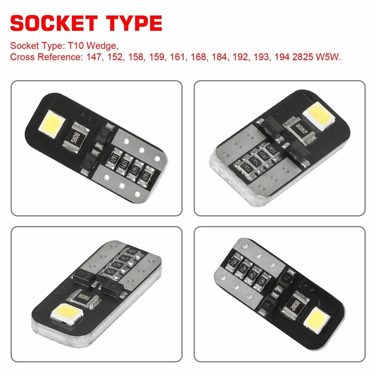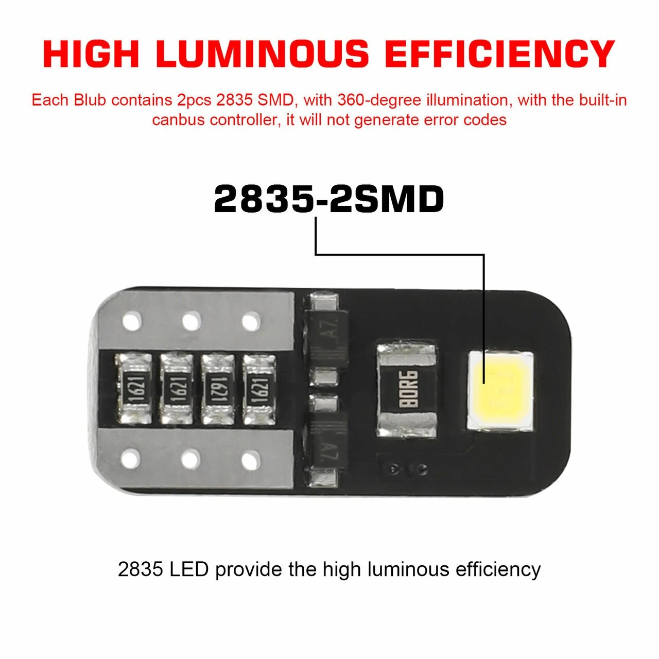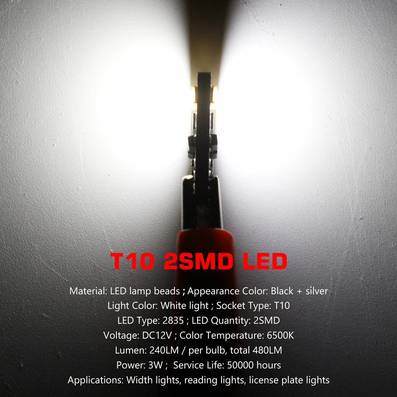 4. Лед Крушки За Габарит, Т10 W5W LED 2 SMD, 12V, Canbus, Бяла Светлина
