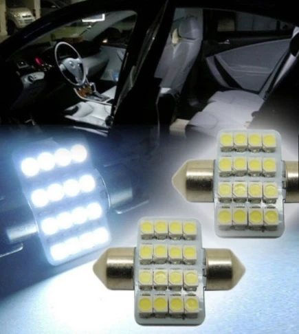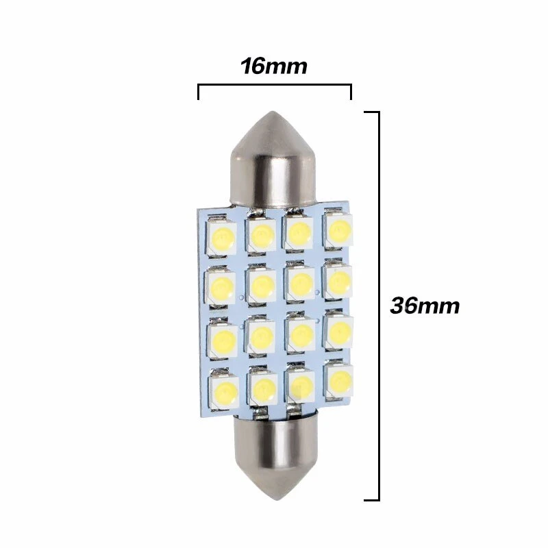 4. LED Лед Диодни Крушки, 16 SMD 5050 , 31мм, 36мм, 39мм, 41мм, 12V, Бяла Светлина