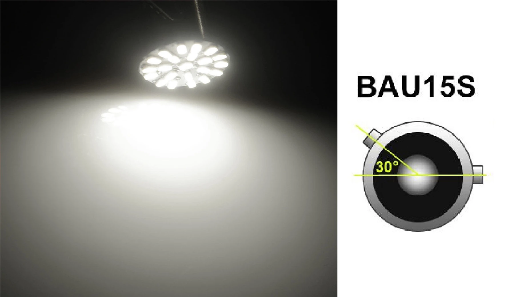 4. LED Лед Крушки, 22 SMD, BA15S 1156 (P21W), Асиметрични, Разминати пинове (150°) , Offset, 24V, Бяла Светлина
