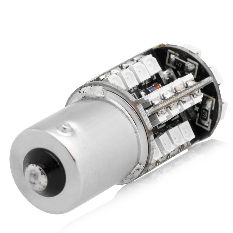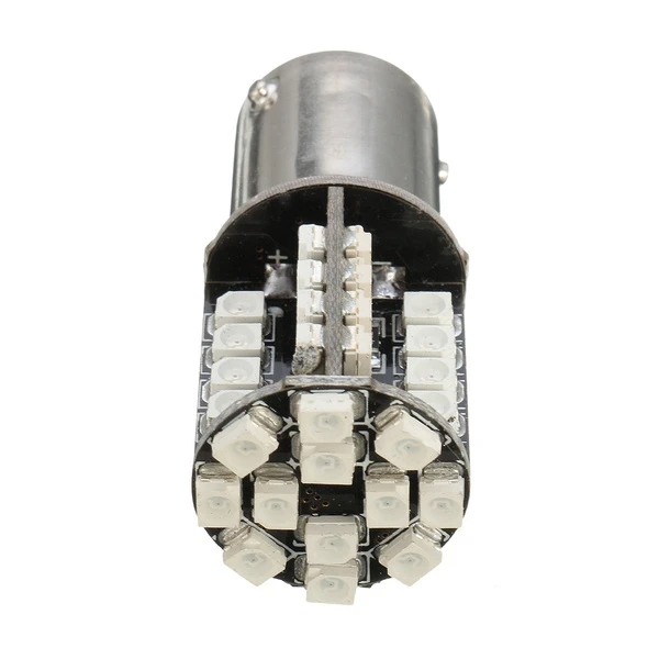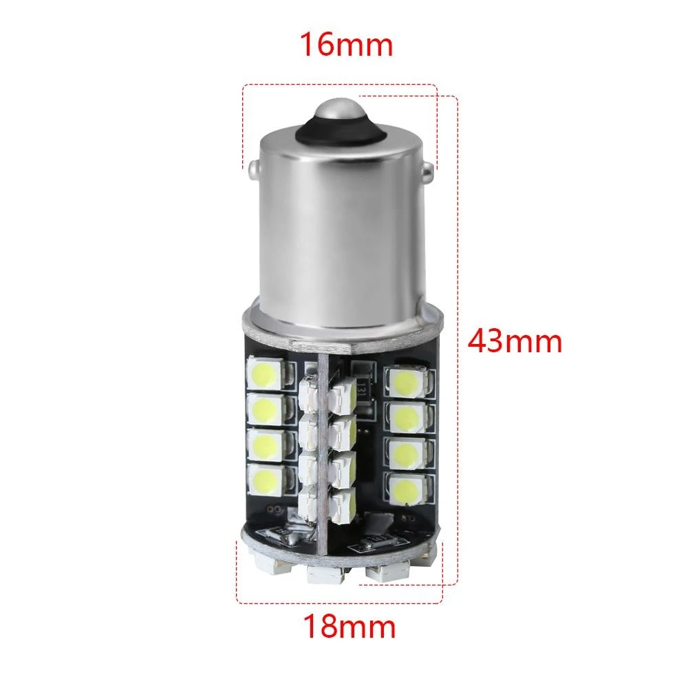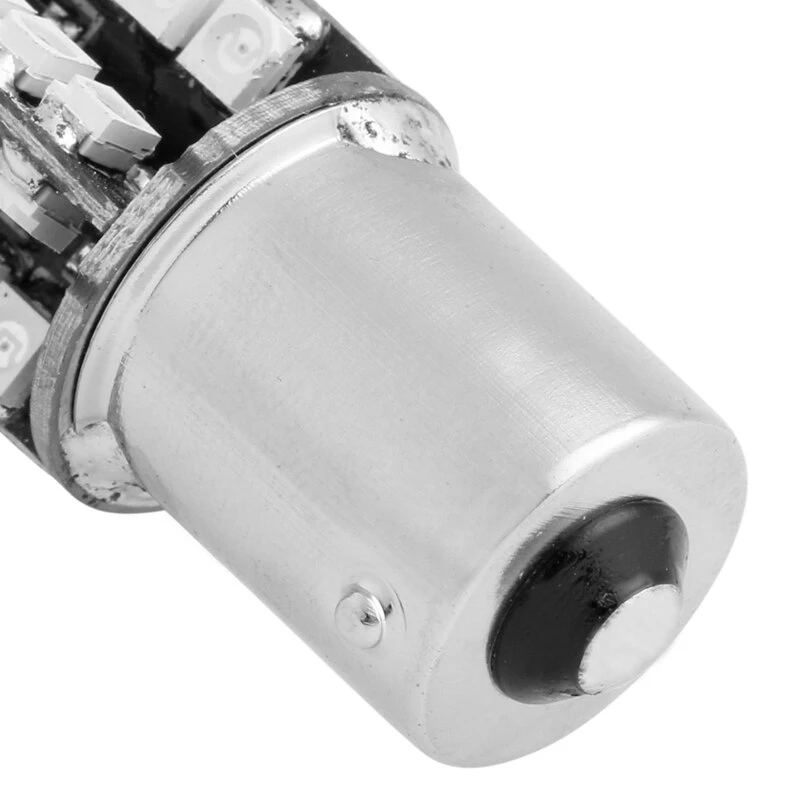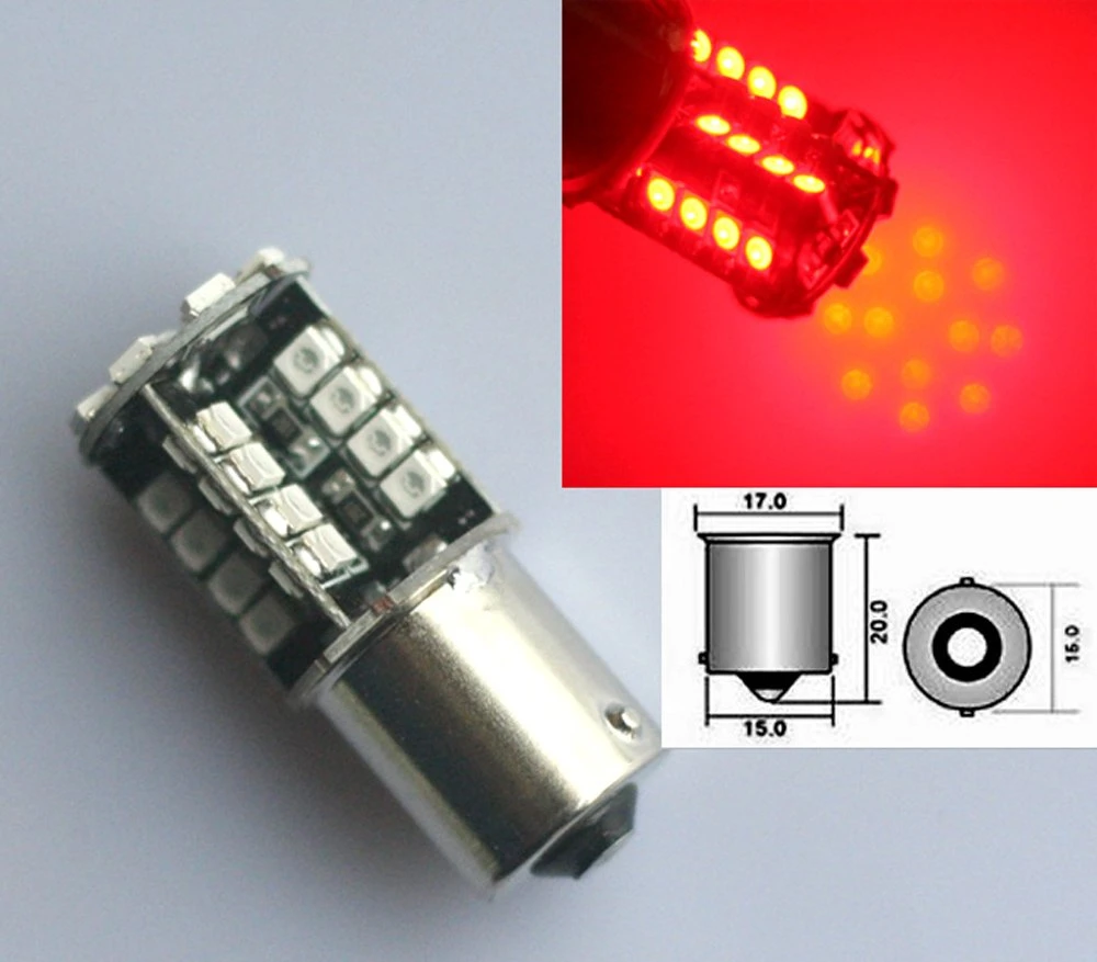 LED Лед Крушки за Габарит, 44 SMD, Canbus, 1156 (P21W), 12V, Червена Светлина Съвместимост с всички модели : 1016 1034 1 142 1157 11 57A 1178A 1196 2057 2 057A 2357 2357A 2357NA 2397 3496 7 528 94; Цена за Сет от 5 броя крушки - 31.35 лв Цена за Сет от 10 броя крушки - 59.4 лв Намалението при закупуване на сет от 5 или 10 броя ще бъде отразено при обработването на поръчката ви ! Спецификация на елемента: Canbus - Error Free - Без Грешки P21W 1156 LED Крушка 44 SMD База тип: 1156 BAY15D P21 / 5W; SMD количество: 44 бр; Налични цветове: студено бял цвят; оранжев ( жълт) цвят, червен цвят Нормално напрежение: 12V ; Работна температура: -40 C до 85 C; Светли мъниста: 44 SMD високо ярки LED; Размер: 18 мм в диаметър и 43 мм дължина;
