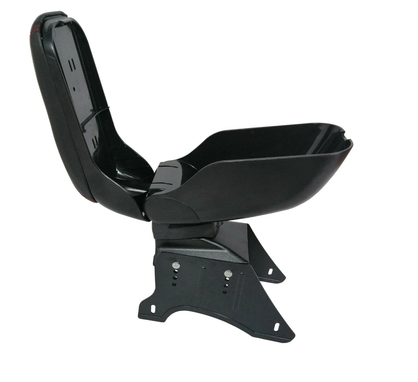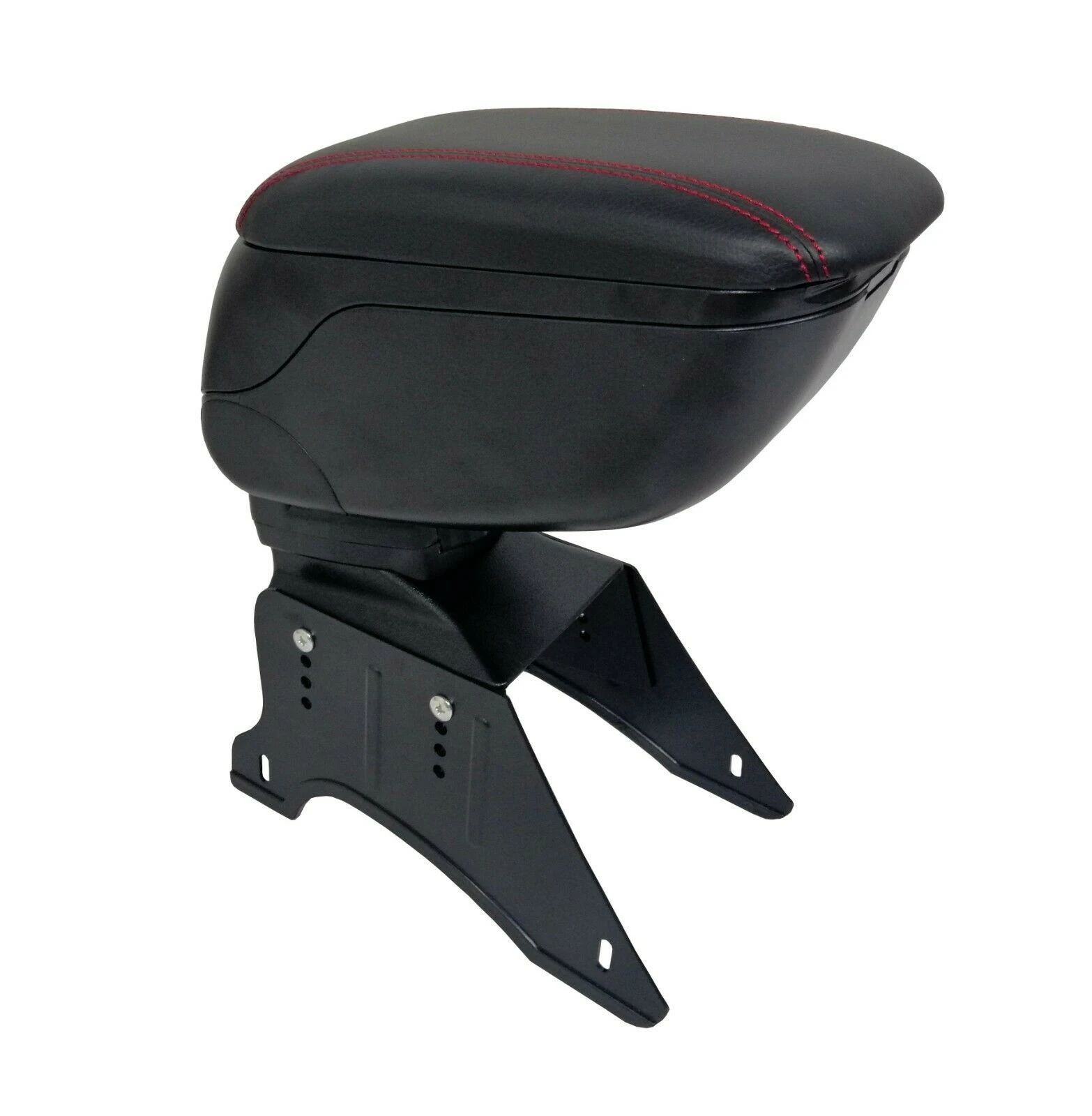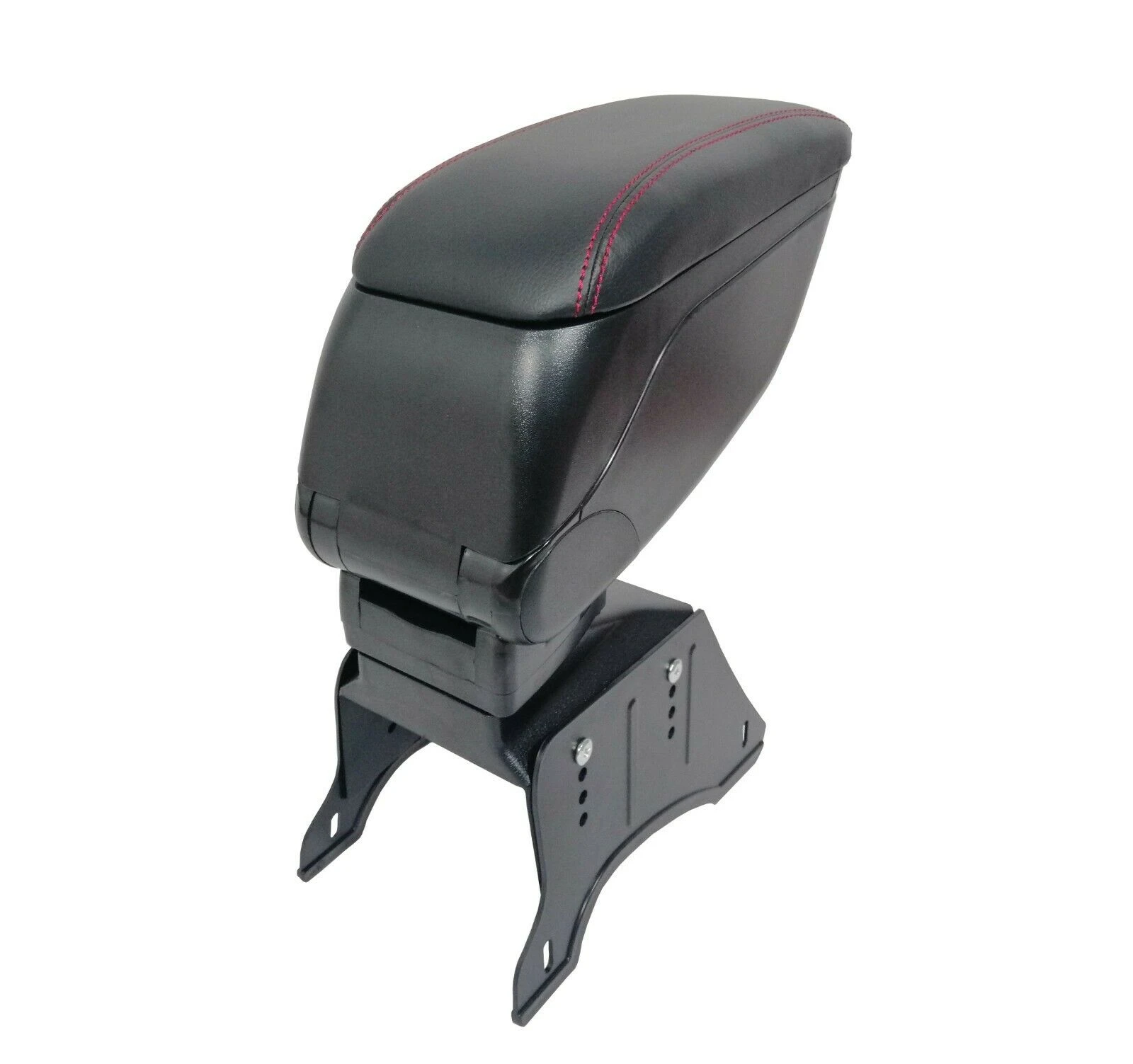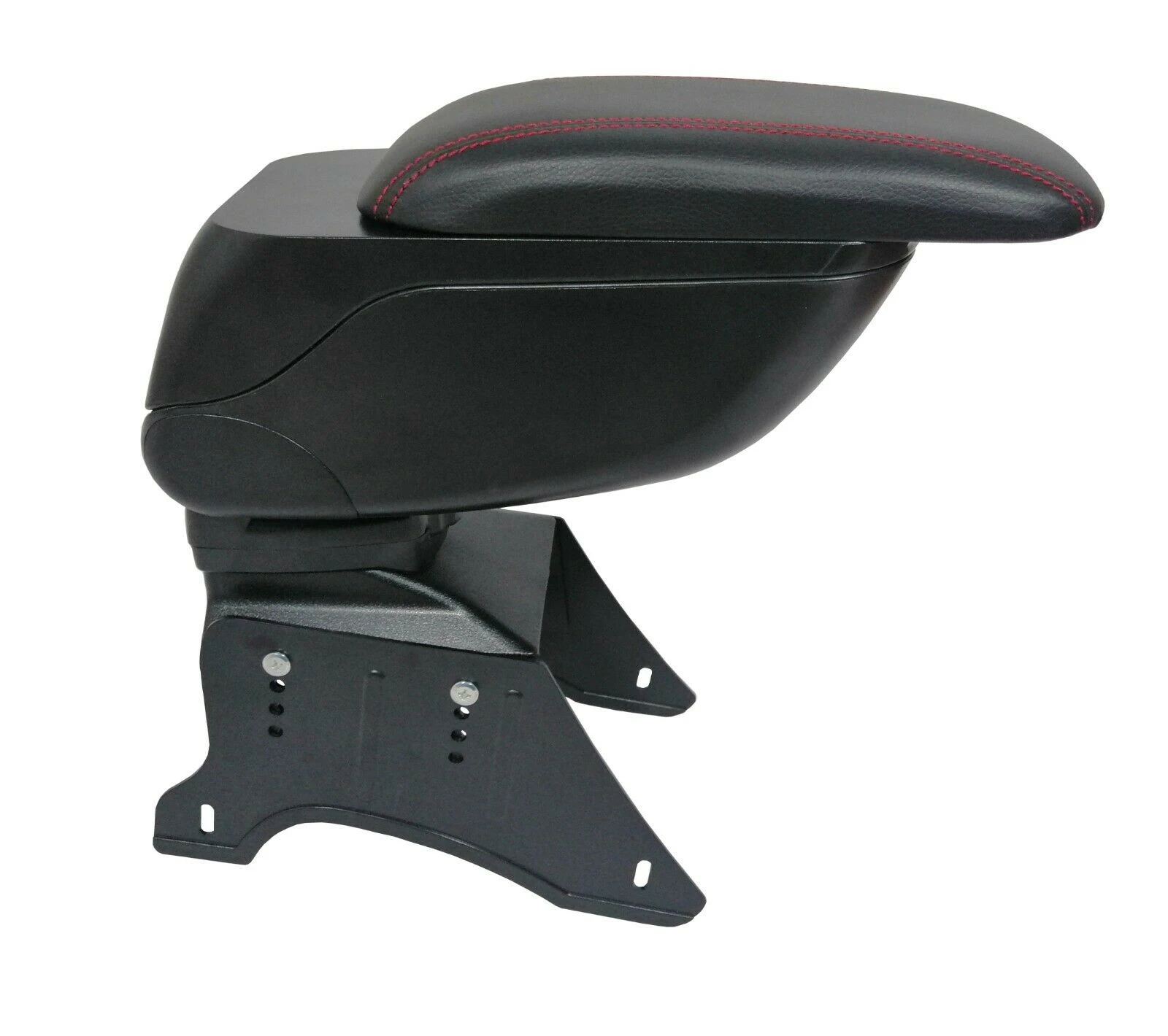 Луксозен Черен Подлакътник, Черна Кожа с Червен Шев, Универсален с Планки и Слайдер Подлакътник за отпочиване ръката на шофьора с кутия за дребни вещи. Изключително удобен и функционален. Плъзгаща се горна част за постигане на по-голямо удобство. Пълно сгъване между седалките когато не се използва. Изработен от качествена еко кожа. Лесен монтаж. Ширина на основата 12см, регулируема височина, максимална височина 35см, размер на горния подлакътник-27см х 13см, Плъзгащ се ТОП 5.5смПет регулируеми настройки на височината на опорната стойка - най-ниската височина 25см с 4 допълнителни настройки на височината до максимум 31см