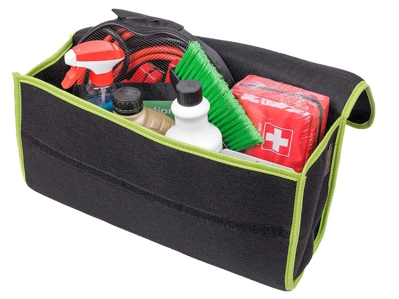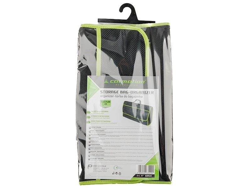 Органайзер Чанта за багажник за кола автомобил бус камион Carmotion Органайзер от здрав материал (филц), снабден с голямо отделение, джобове от еластична мрежа има капак и дръжка за лесно пренасяне. Закачащите се велкро ленти от долната страна позволяват закрепването му към тапицерията, за да се предотврати разместването. Размери: 47 х 17 х 30 см Консумативите са с информационен характер и не са включени в цената.