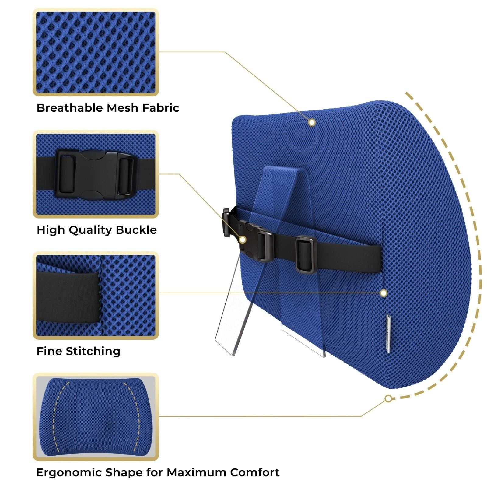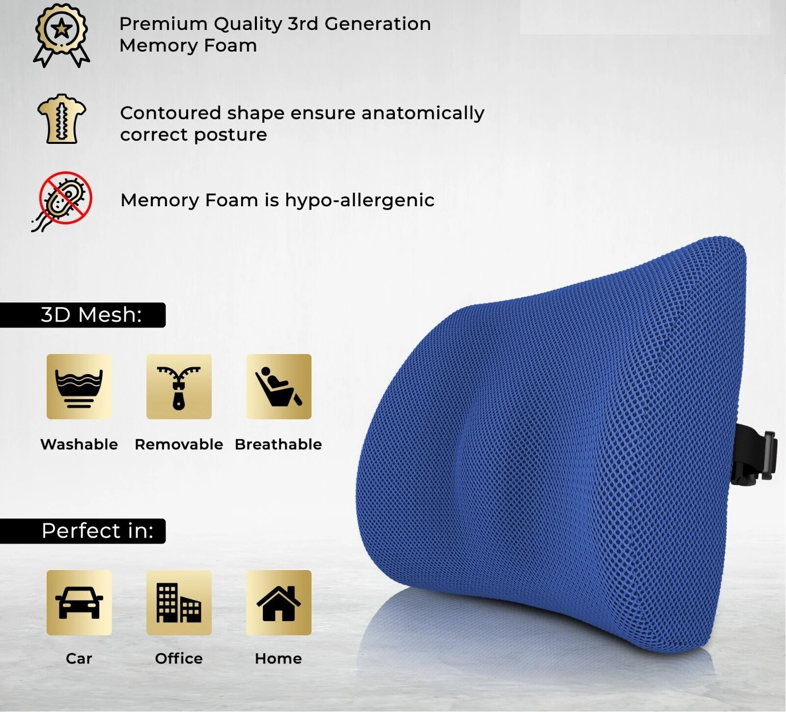 Ортопедична анатомична възглавница за лумбална опора от мемори пяна, спомага за премахване на болките в кръста, поддържа гръбнака и способства за правилна стойка. Може да се използва на стола в офиса или у дома, в колата, дори в инвалидната количка. Препоръчва се за хора, които прекарват много време в седнало положение, за предотвратяване на заболявания на гърба. ПРЕПОРЪЧВА СЕ ЗА: -Хора, работещи в офис-Хора, управляващи кола-Хора с увреждания-Често пътуващи със самолет или кола-Хора, които имат или са имали ишиас, болки в кръста, в опашната кост, хемороидални болки, болки поради дискова херния, кокцигодиния или пилонидални кисти, остеопороза-Бременни жени за да избягване или премахване на болки в гърба. -Освобождава натиска върху гръбначния стълб-Облекчава незабавно болките в гърба-Подобрява стойката и кръвообращението-Ергономична форма, препоръчана от хирурзи-ортопеди-Изключително удобна и универсална-Превъзходно качество -Дишаща мрежеста материя -Хипоалергична Размери: 32 см х 12 см х 34 см Цвят: Син ВИСОКОКАЧЕСТВЕН ПРОДУКТ Може да я ползвате където имате нужда от нея в офиса или у дома, в колата или в самолета.Възглавницата е изработена от 100% мемори пяна. Високо качеството. Калъфът с цип може да бъде свален и изпран в пералня.Един универсален размер. Може да се използва от жени, мъже, тийнейджъри, деца, независимо от теглото. Няма противопоказания.