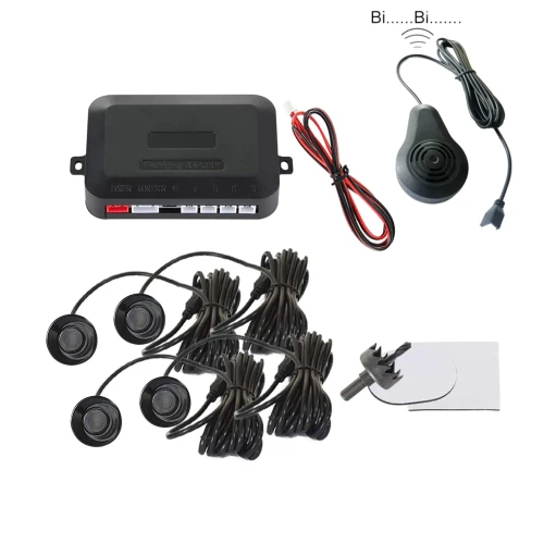 • Парктроник с 4 четири датчика за паркиране на заден ход черен зумер с звук Би-Би-Би 12V