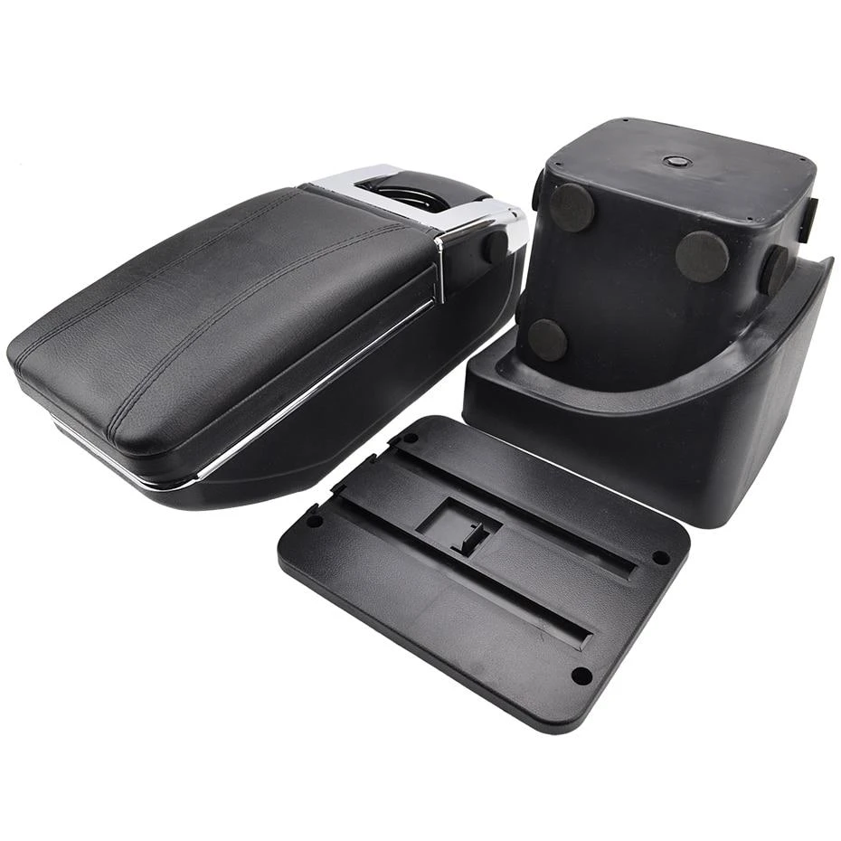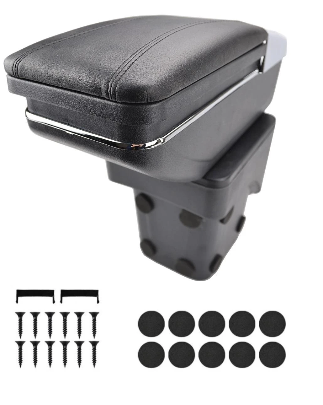Подлакътник с монтажен комплект, проектиран за комфорт и функционалност. Монтажът е лесен и не изисква пробиване или промени във вътрешността на автомобила. Характеристики: Материал: ABS пластмаса + еко кожа Цвят: Черен с черен шев Неинвазивен монтаж пасва на мястото на оригиналното отделение за съхранение Версия: С две отделения за съхранение Горен слой подходящ за мобилен телефон Долен слой за кенчета, портфейл, ключове и др. Мек капак, тапициран с еко кожа, който може да се изтегля напред за допълнителна опора Поставка за чаши в задната част Подвижна пепелник под поставката за чаши Стабилна конструкция и лесен достъп Съвместими модели: Ford Focus MK2 (20052011) Не е съвместим с модела за Северна Америка Не е съвместим с Ford Focus Zetec Съдържание на опаковката: Подлакътник с тапицерия от еко кожа Всички необходими аксесоари за монтаж