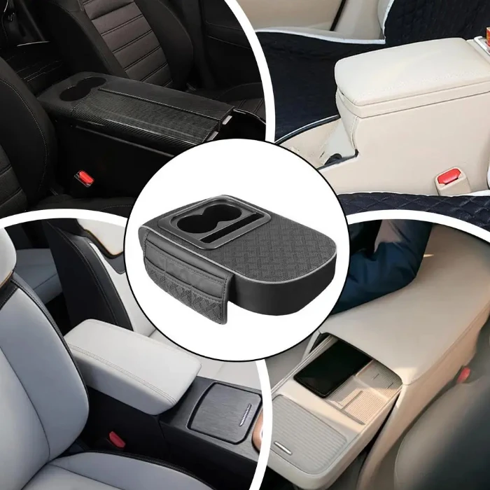 Модел: 06287  /  PA1178 Функционален и стилен допълнителен подлакътник за автомобил, изработен от висококачествена изкуствена кожа, който съчетава удобство, комфорт и повече място за съхранение. Подходящ за всеки автомобил, този аксесоар ще направи пътуванията по-организирани и приятни. Основни характеристики: 2 вградени поставки за чаши – стабилни и удобни при пътуване. Специално място за телефон – лесен достъп и сигурност по време на шофиране. 6 странични джобчета – за съхранение на ключове, документи, кабели и други малки вещи. Изработка от изкуствена кожа – елегантен външен вид, лесно почистване и дълготрайна употреба. Универсален дизайн – подходящ за монтаж във всеки автомобил, без да заема излишно място. Предимства: Осигурява допълнителен комфорт и удобство за водача и пътниците. Поддържа автомобила подреден с достатъчно място за съхранение. Луксозна визия, която допълва интериора. Практичен избор за дълги пътувания и ежедневна употреба.