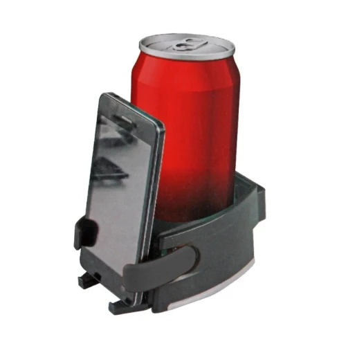 Поставка за чаша + поставка за телефон . Перфектна устойчивост и стабилност. Модел: 44083-1712. Универсална поставка за чашa с закрепващи скоби към въздуховодите (парното) на автомобила. В долната част на поставката има плъзгач, който регулира наклона на поставката, за да бъде хоризонтално. Поставката има пружинираща скоба, която задържа чашата или бутилката и пази от преобръщане. Стойката за телефон е съвместима с повечето мобилни телефони. В долната част на поставката може да се регулира в зависимост от разстоянието на поддръжка. Основата може да се разпъва около 2 см. Перфектна устойчивост и стабилност. Материал: Пластмаса. Цвят: Черен. Изработена от висококачествена пластмаса. Размери: Вътрешен диаметър на държача за чаша: 73 мм. Държач на телефона: от 68мм до 85мм.