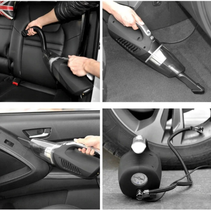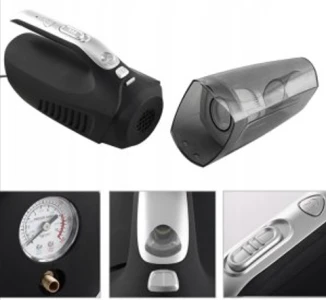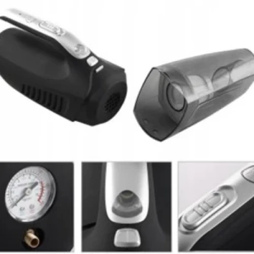 Модел: 68013 - PA16 Прахосмукачка за автомобил 12V + Фенер + Компресор. Включени удължителен маркуч, четка, дълга плоска дюза и 3 бр. дюзи. 4 функции: прахосмукачка, фенерче, компресор, манометър за гуми. Кабел за захранване от слот за запалка. Мощност 100W Напрежение: 12V Всмукателна мощност: 4000 Pa, Производителност: 30 л/мин, Налягане: 4 бара