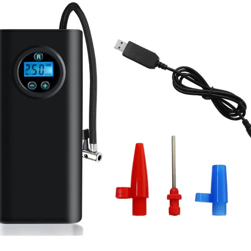 Компресора има цифров дисплей, както и бутон за смяна на различни мерни единици (bar, Kpa, psi, Kg/cm 2). Той автоматично ще се изключи при достигане на предварително зададената от вас стойност на налягането. Това е един наистина необходим аксесоар в колата при нужда от корекции на налягането на гумите на пътя. Също така е идеален за къмпинг или на плажа, за да надуете надуваем дюшек, топки или други надуваеми играчки за децата. Компресора е малък, компактен, лесен за пренасяне и за използване, удобен и безопасен. Капацитет на батерията: 3600mAh Размер на продукта: 180 x 80 x 45 мм Номинална мощност: 120W Напрежение: 7.4V Употреба: Първо свържете накрайника на маркуча към гумения вентил. Натиснете и задръжте бутона Set на цифровия дисплей. Когато цифровият дисплей светне, натиснете кратко бутона Set , за да зададете желаната мерна единица (bar, Kpa, psi, Kg/cm 2). Натиснете бутоните + и , за да регулирате желаното налягане в гумите. Натиснете бутона на стартовия превключвател на компресора (златния бутон отстрани на компресора), за да започнете помпане. Компресора ще спре автоматично след достигане до зададената стойност Внимание: Преди първата употреба, заредете компресора за 6-7 часа.По време на зареждането на USB накрайника ще свети червена снетлина, и ще се смени със зелена, когато е готов.