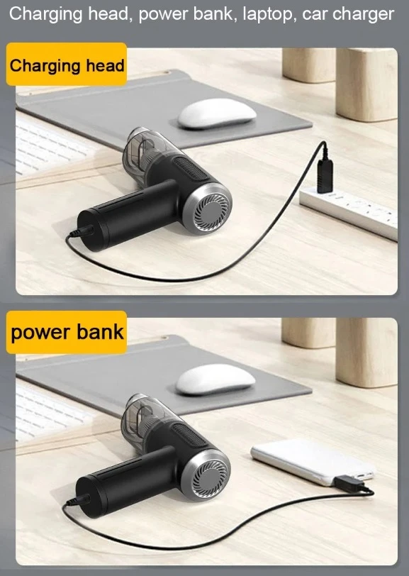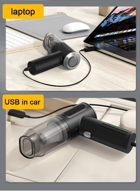 Супер мощна преносима безжична прахосмукачка за дома и колата - 200W. С тази преносима прахосмукачка ще се отървете от всяка мръсотия, прах или косми от домашни любимци. Можете да я използвате както в автомобила, така и в дома си, за да почистите замърсените места. Зарежда се с USB кабел, който е включен в комплекта. С две удобни приставки за труднодостъпните места. Батерия: 2000 mha Време на работа: 20-30 минути Време на зареждане: 2-3 часа Цвят: Черен