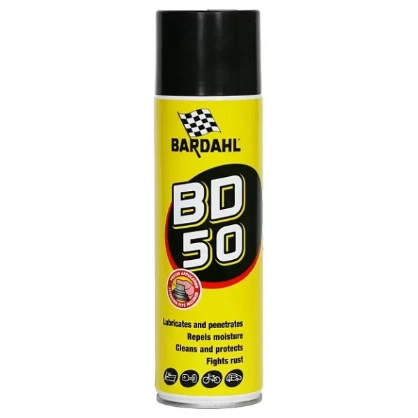 BD 50 е многоцелеви препарат, съставен от базово синтетично масло и система от инхибитори проникващи и предпазващи от ръжда и корозия, чрез изолиране на влагата.