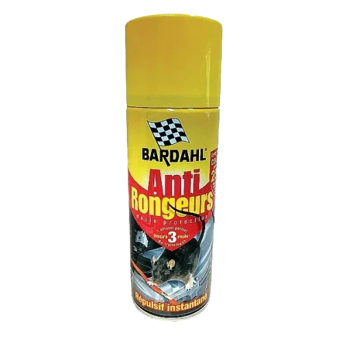 Служи за мигновенно отблъскване на нападенията от гризачи (плъхове, мишки, катерици, белки и др.) над гумирани и пластмасови части (тапицерия, кабели, маркучи, канали и др.) привлечени от топлината на двигателя. Концентрирана формула със силно отблъскващо свойство. Не оцветява. Безопасен за частите на двигателя. Продължителност на действие една седмица. Отблъскващ ефект. Опаковка от 400мл.