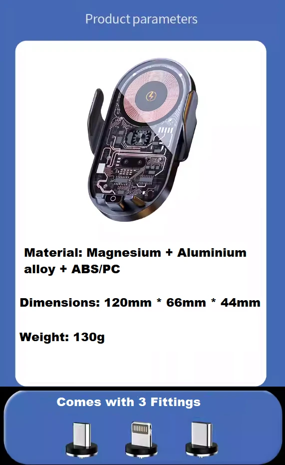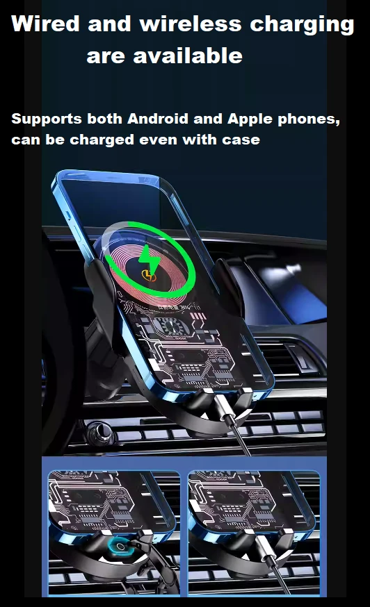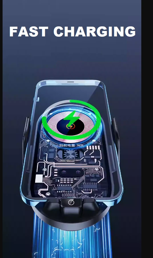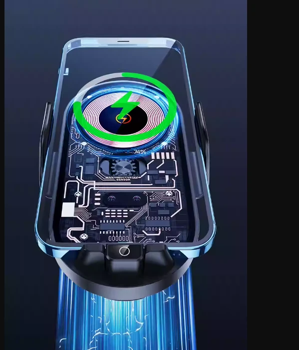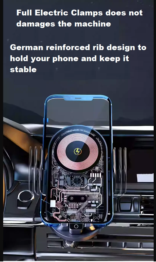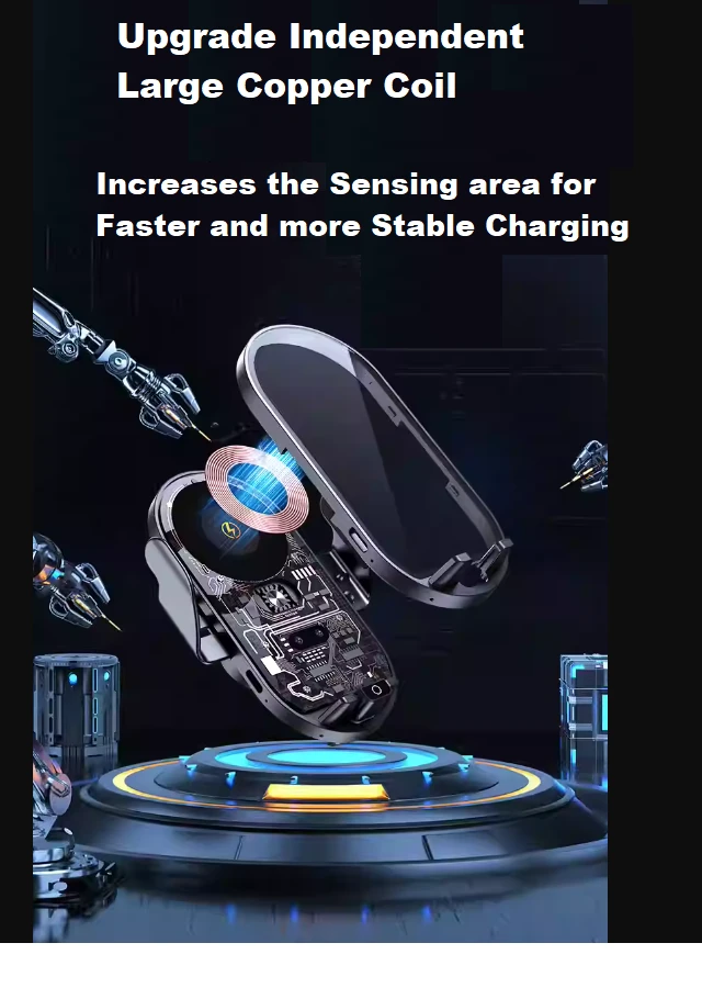 Използва съвременна технология, състояща се от автоматично затягане на страничните държачи, което прави стойката изключително функционална. Максималната ширина на стойката е 95мм, а страничните рамена се отварят и затварят автоматично. За да освободите телефона, прокарайте пръст отзад в горната част на стойката. Съвместимост: всеки смартфон с QI безжична свързаност Ефективно разстояние: ≤8мм Мощност: 15W Комплектът съдържа: Зареждаща безжична стойка Щипка за въздушната автомобилна вентилационна решетка USB Type-C кабел 3 х магнитни накрайника (IPhone, Type-C, Android) за устройства, които не поддържат безжично зареждане