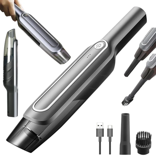 Супер мощна преносима безжична прахосмукачка за дома и колата 60W. С тази преносима прахосмукачка ще се отървете от всяка мръсотия, прах или косми от домашни любимци. Можете да я използвате както в автомобила, така и в дома си, за да почистите замърсените места. Зарежда се с USB кабел, който е включен в комплекта. С две удобни приставки за труднодостъпните места. Време на работа: 15-20 минути