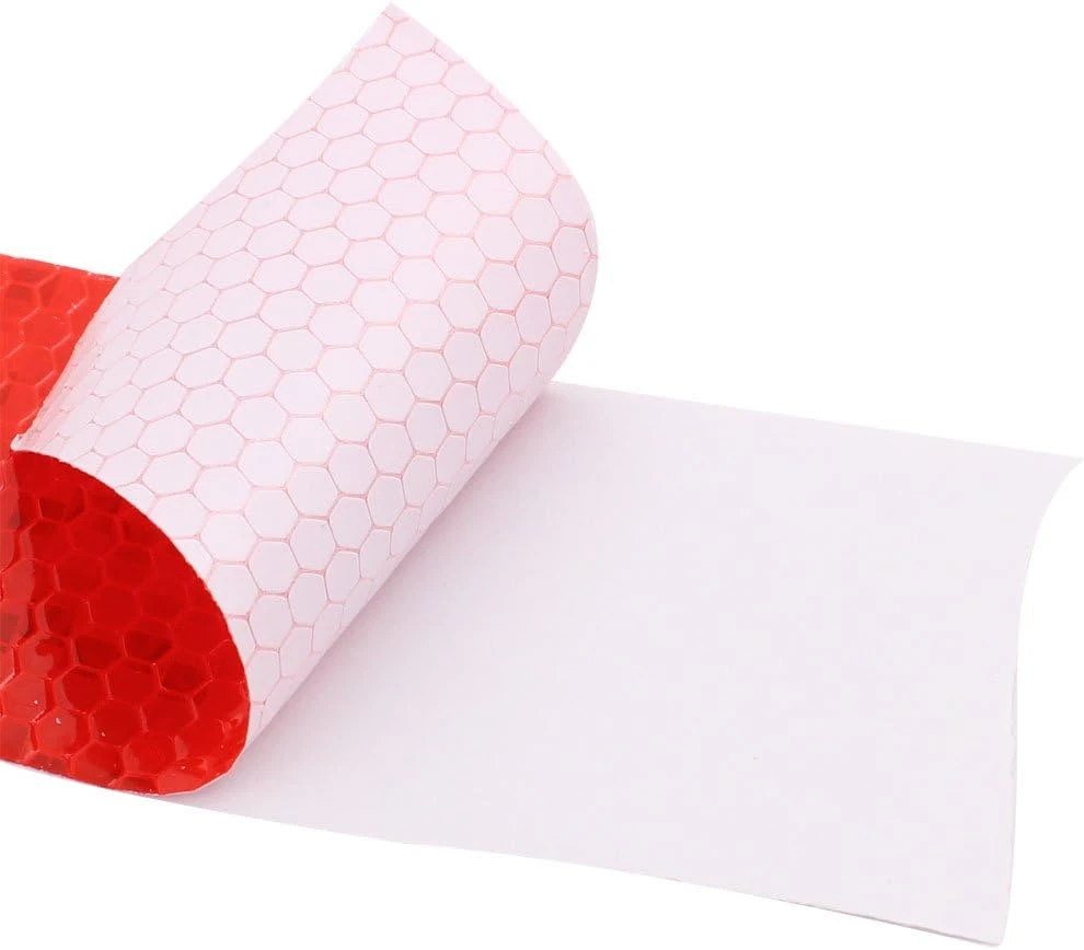 Светлоотразителна рефлекторна самозалепваща се лента фолио 5 m x 5 cm червена Описание:С триизмерен ефект на шестстранна пчелна пита, подбрява видимостта на предмети и съоръжения, застрашаващи безопасността на движение.Водоустойчива с дълъг експлоатационен живот и силно отразяваща способност. Съвместима с Хартия, Метал, Дърво, Стъкло, Пластмаса, Керамика, Гума, Картон, Кожа, Порцелан, Теракот Характеристики: Материал: пластмасаЦвят: червенРазмери: 5 m x 5 cmЛентата е самозалепваща, само отлепете защитния слойСъдържание на опаковката: 1 брой