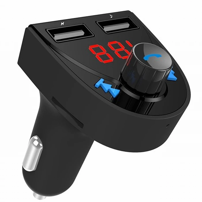 Авто FM трансмитер, Handsfree Модел: 75088 Трансмитер със стилен LED дисплей. Безжична Bluetooth връзка, FM предавател, Зарядно Функции: отговор / отхвърляне / свободни ръце / повторно набиране. Бутон за управление на разговори и музика. Вграден микрофон. Защита от претоварване. 2х USB изход: 5V/3.1A, Type C PD порт 25W. Интелигентен Bluetooth Версия 5.0 Напрежение: 12 - 24V FM Честота: 87.5-108.0Mhz Материал: ABS пластмаса. Обхват до 5м