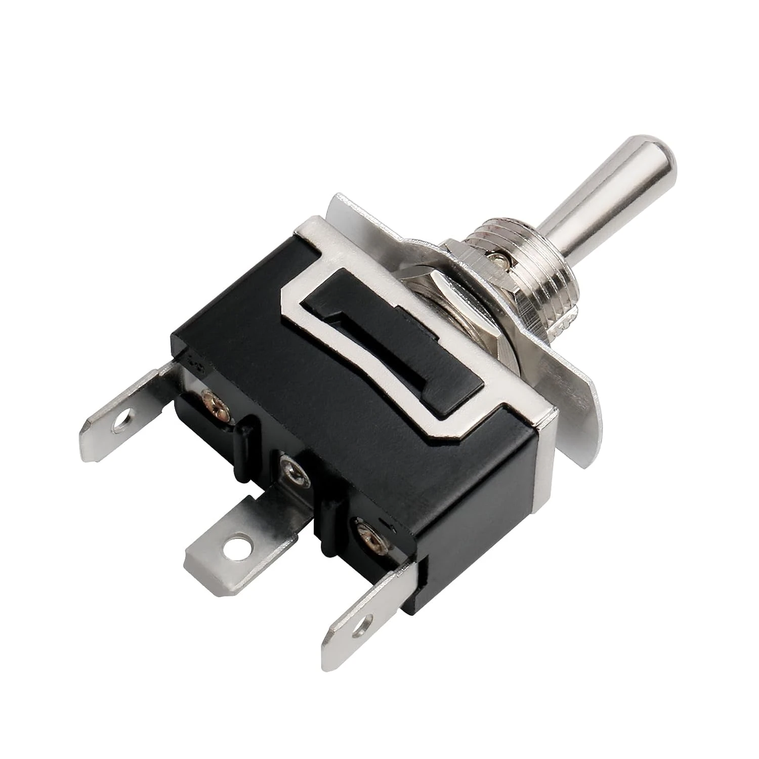 ЦК ключ превключвател с 3 позиции ОN-OFF-ON Товароносимост на контактите AC: 10A/125VAC, 6А/250VAC Електрически изводи: 3бр Изводи: Винтови Клеми Размери: 48 mm(В) x 28.5 mm(Ш) Материал на корпуса: пластмаса Цвят на клавиша: сребрист