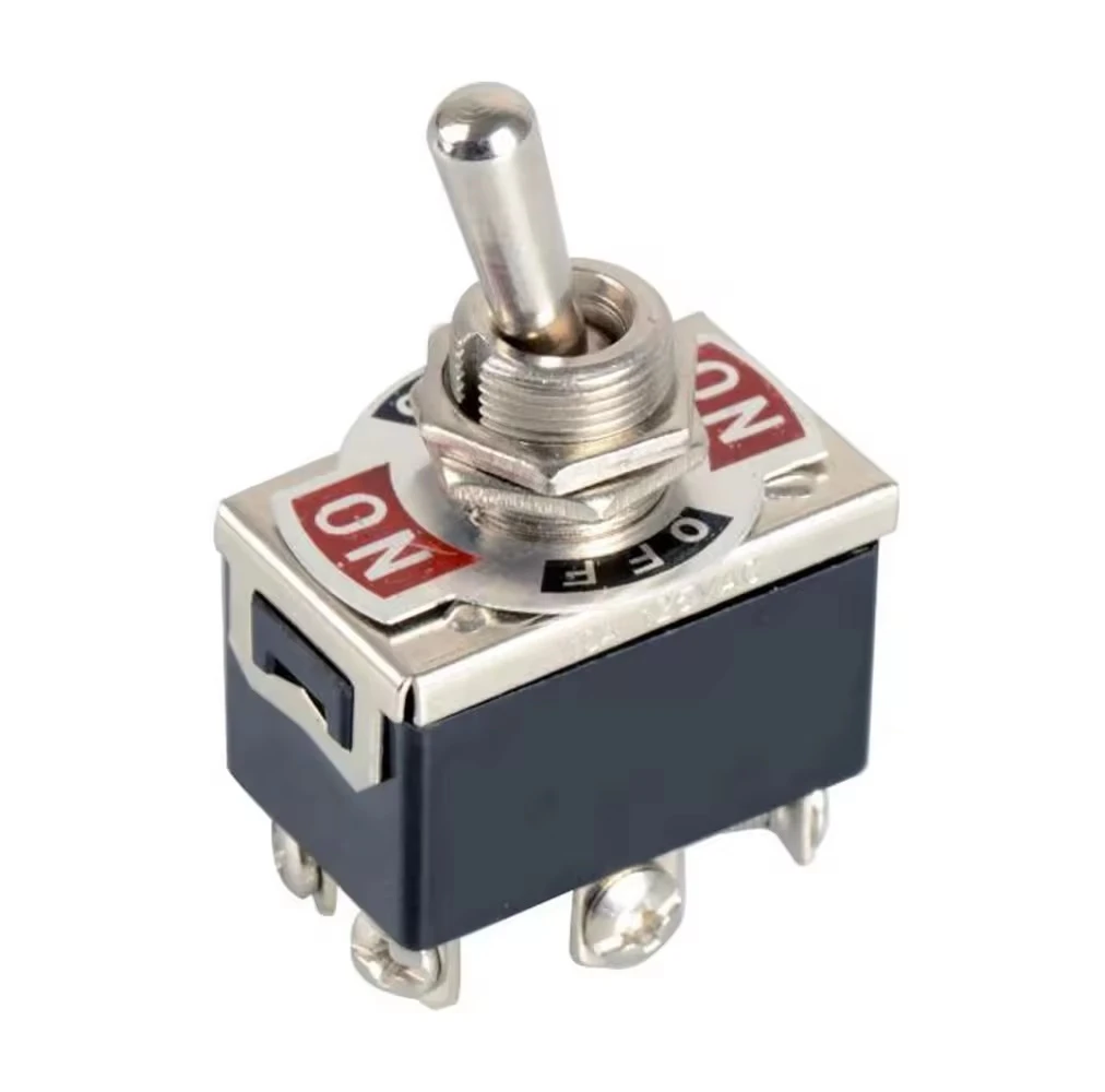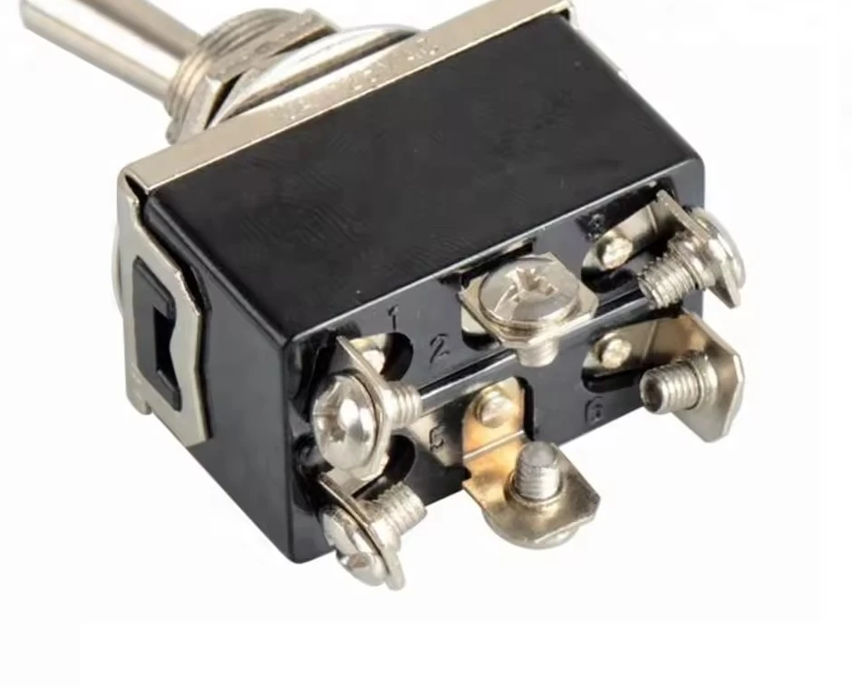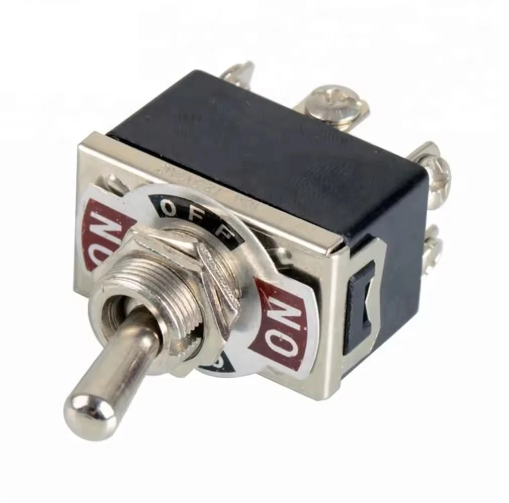 ЦК ключ превключвател с 3 позиции ОN-OFF-ON Товароносимост на контактите AC: 10A/125VAC, 6А/250VAC Електрически изводи: 6бр Изводи: Винтови Клеми Материал на корпуса: пластмаса Цвят на клавиша: сребрист
