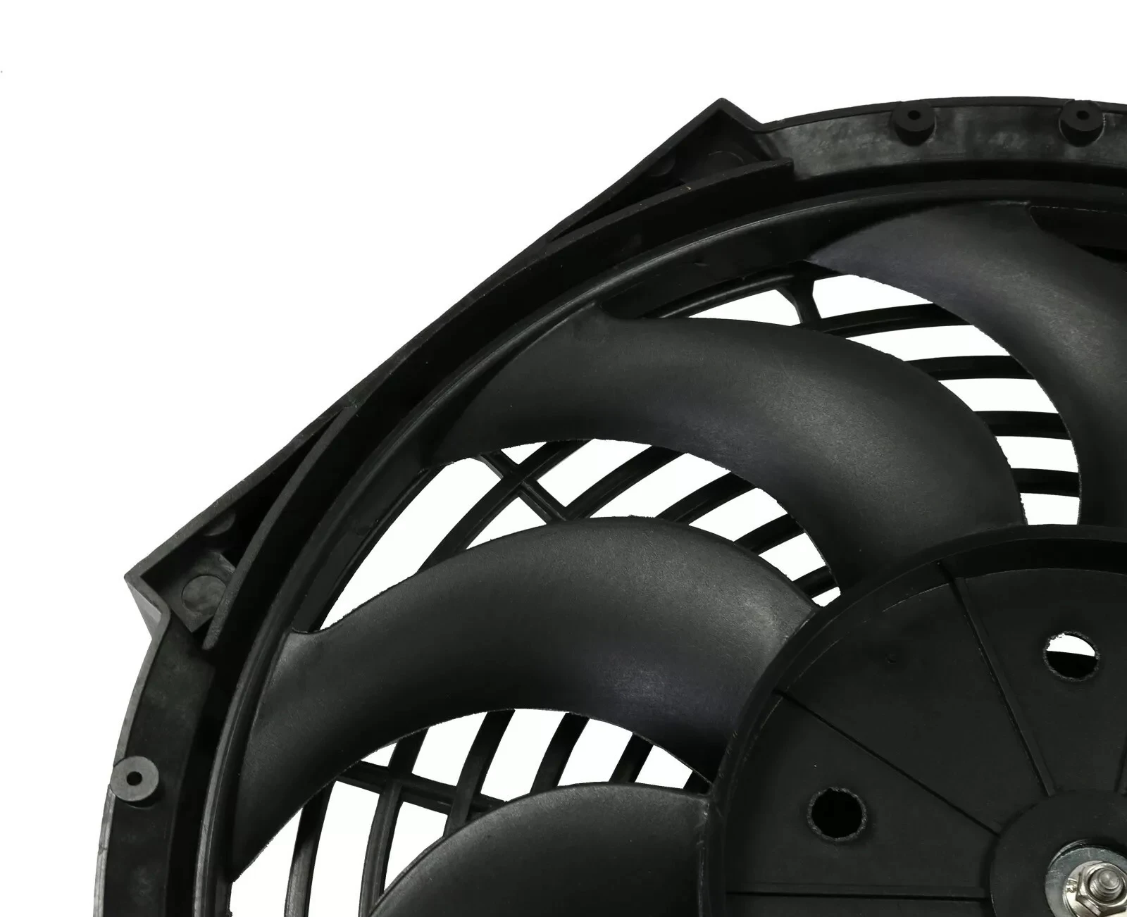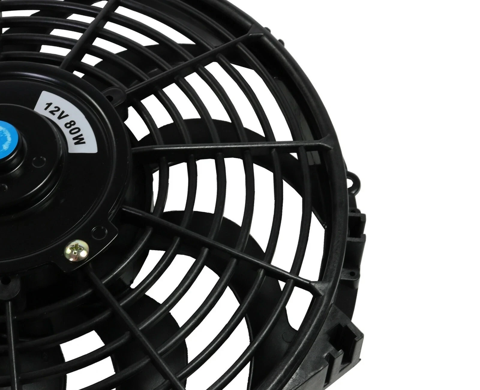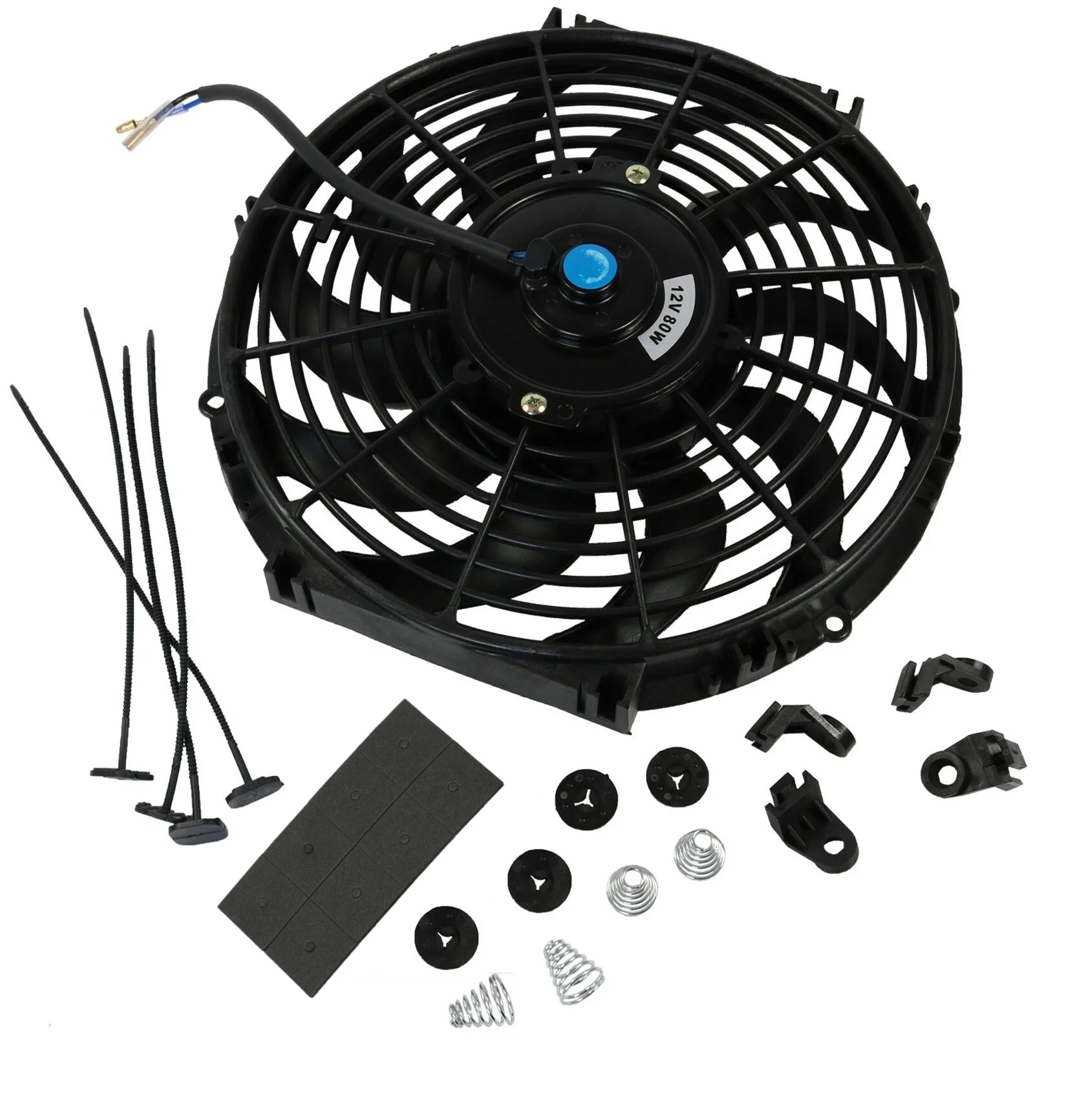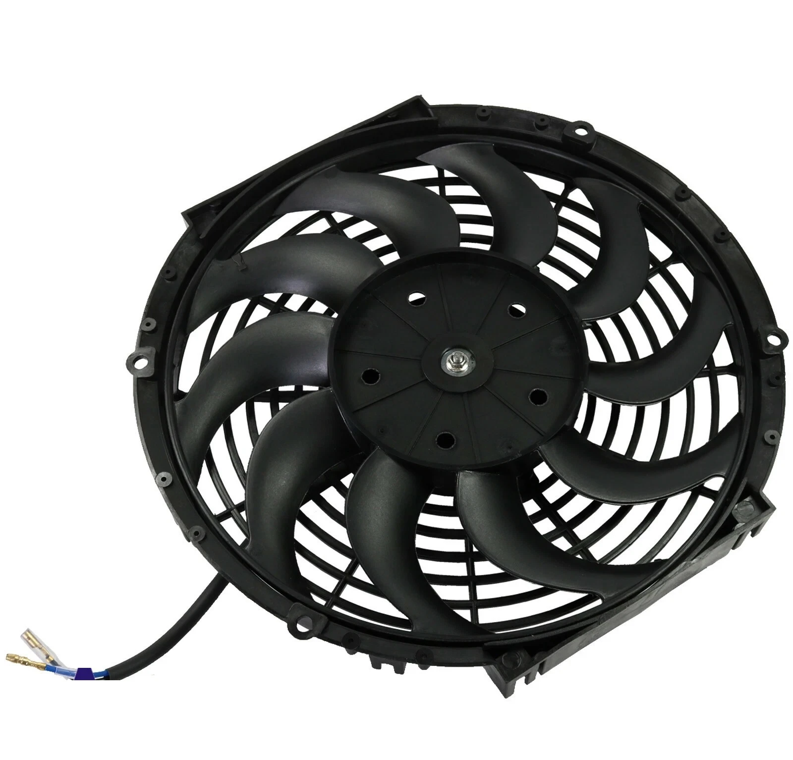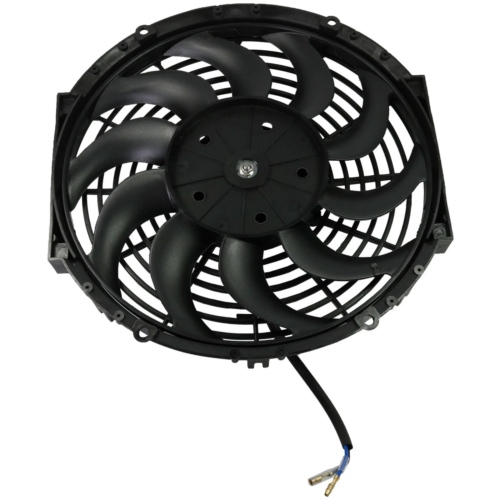 Описание на продукта: Представяме ви високоефективен електрически вентилатор за радиатор с извити перки, осигуряващ оптимално охлаждане на вашата охладителна система. Подходящ е за широка гама от автомобили, мотоциклети, офроуд превозни средства и проекти с ограничено пространство. Технически характеристики: Размер: 12 инча (30см) Брой перки: 10 извити лопатки Напрежение: 12V Мощност: 80W Максимален въздушен поток (засмукване): 1387.09 м/ч Тип монтаж: Push или Pull (в зависимост от полярността на свързване) Материал: Термоустойчива ABS пластмаса Цвят: Черен Комплектът съдържа: 1 x вентилатор с кабел и конектори4 x монтажни стойки4 x метални пружини4 x пластмасови шайби4 x монтажни скоби (свински опашки)Антивибрационни уплътнения Предимства: Компактен и мощен дизайн Лесен монтаж с включените аксесоари Подходящ за различни охладителни системи Висока устойчивост на температура и дълъг експлоатационен живот Приложение: Идеален за автомобили, ATV, мотоциклети, лодки, индустриални охладителни системи и други устройства, които изискват допълнителна вентилация.