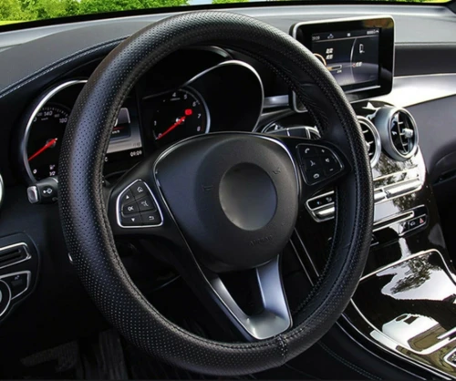 Универсален Перфориран Дишащ Калъф За Волан, Черен цвят, Еко Кожа, За Автомобил Бус Джип SUV