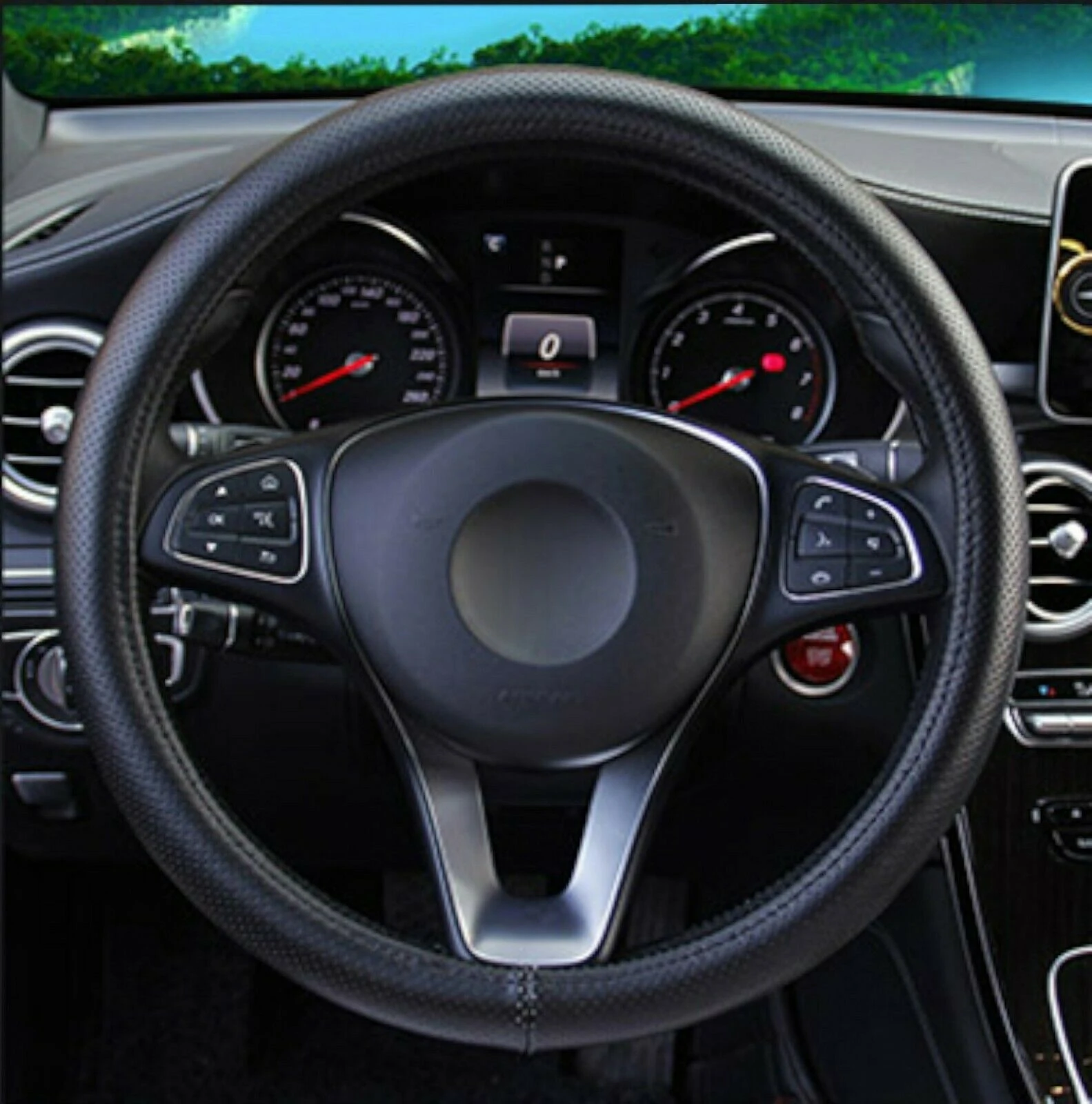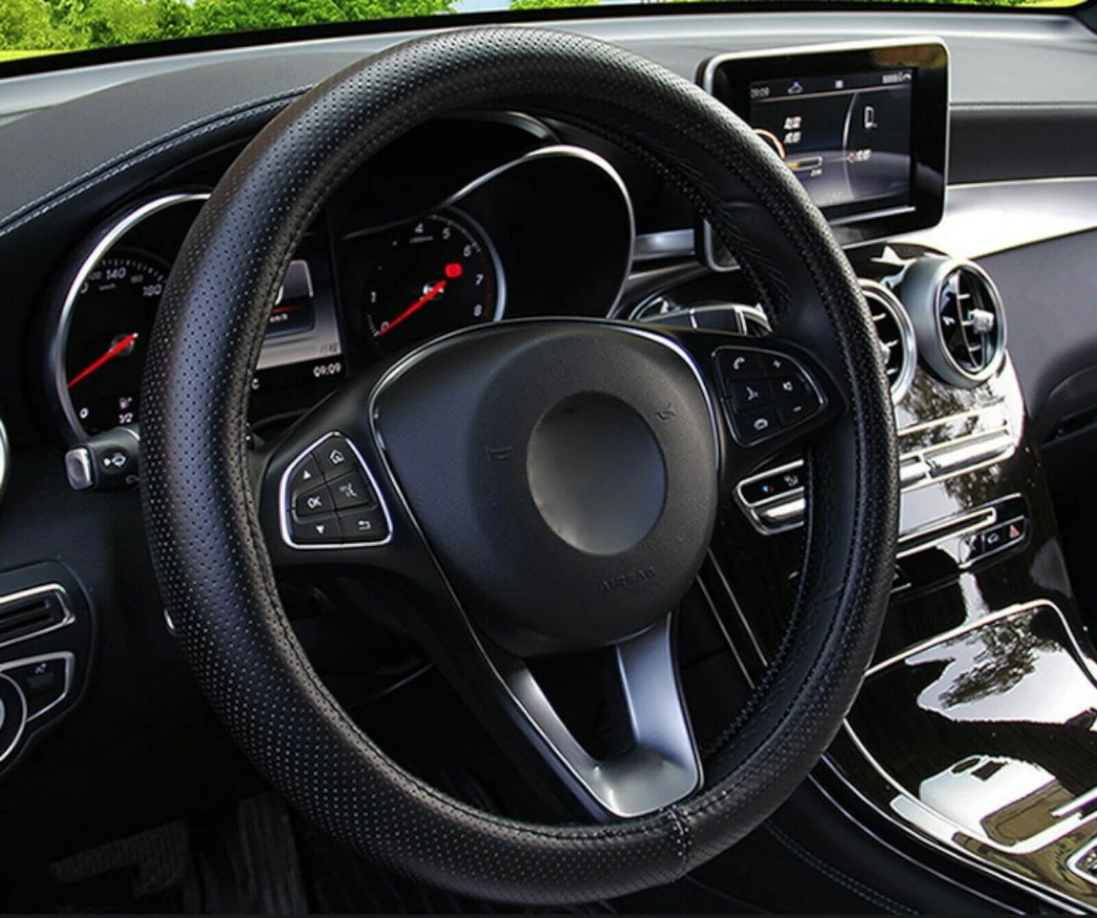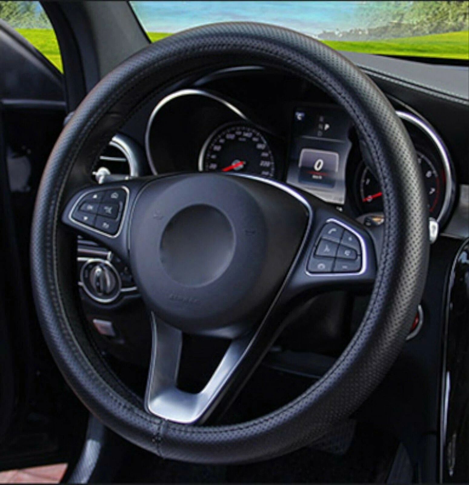 • Универсален Перфориран Дишащ Калъф За Волан, Черен цвят, Еко Кожа, За Автомобил Бус Джип SUV