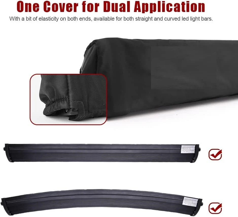 Универсален монтаж, пасва както за прави, така и за извити лед барове. С малко еластичност в двата края, прецизни изрези и отвори, универсален. Изработен от висококачествен водоустойчив, ветроустойчив и прахоустойчив материал от външната страна. Устойчив на сняг и ниски температури. Предпазва от изгарящото слънце. От вътрешната страна има мека подплата с цел да предпазва повърхността на лед бара от надраскване. Дължина: 61 см Височина: 10 см Цвят: Черен